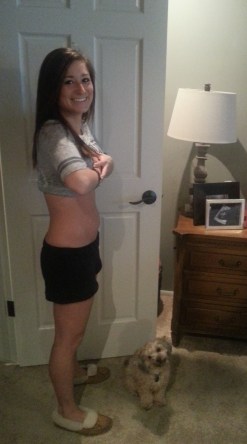 8 Weeks, 1 Day or 10 Weeks, 6 Days (taken in the morning)… Until my next ultrasound on November 25th, I’m officially refusing all due dates and am lost somewhere between 8 and 11 weeks. Please note my sweet puppito in the lower right corner. What a babe! **Actually 8 Weeks, 4 Days