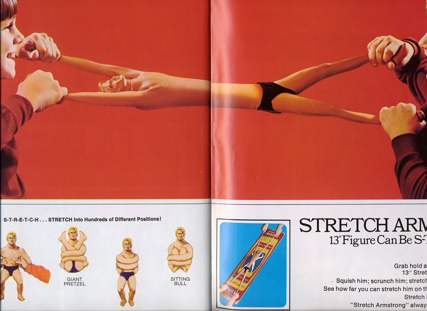 So, from my memory, it began with my sister going into labor. Sorry, Jess, I know you’re not pregnancy’s biggest fan and you and your hubs have no plans of adding to your brood, but in my dream, you did. Anyway, for some reason, my sister’s husband wasn’t there and instead, my mom and I had the honor of joining my sister for her birth. We rushed into this laboratory-like room where another woman was in the process of laboring. It was the quietest, weirdest thing ever. The doctor/nurse lady was pushing downwards on the lady’s stomach, as if to help push the baby out. Then, suddenly, the smallest little baby started to emerge. Obviously, the doctor/nurse grabbed the baby’s arms, which were somehow out first, and started to pull the baby from the lady. This baby literally stretched like a stretch armstrong doll (see below). Once completely out, the baby was so tiny. I think the head must have been just barely bigger than a golf ball and its body followed suit.