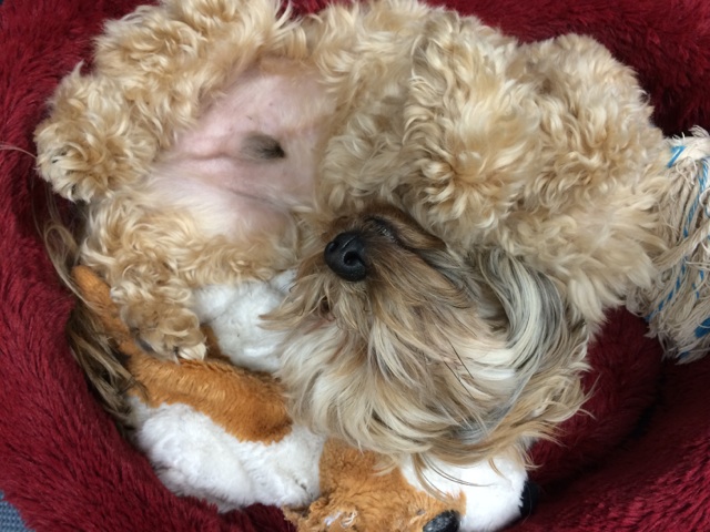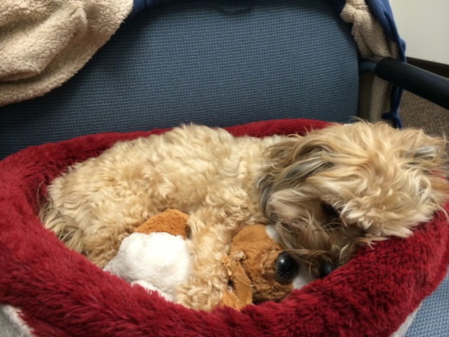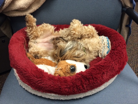 In other, similar news, Toby is also quite sluggish. I had him with me at work until around noon today and this is how he spent his day…