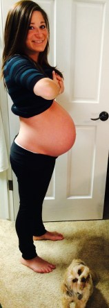 38 weeks… 9.5 MONTHS PREGNANT! (June 13, 2014). Okay seriously, there are only 2 more weeks until my due date. That is crazy. Unfortunately, you can see that this stubborn little woman is still high as ever and refusing to drop. It’s surprising that she’d be stubborn, right? Also, look at Toby. I mean, is he for real? Why is he the cutest dog ever?