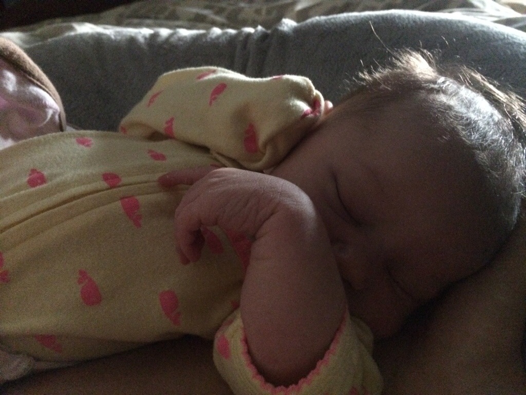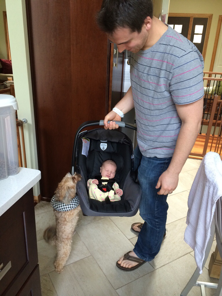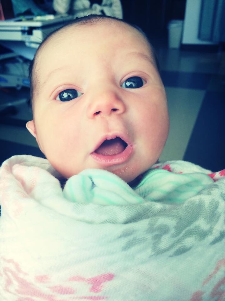 She’s home and named and the most perfect thing in this world. She is also a total milk monster! Last night she fed nonstop until around 6 am when my hubs finally just took her to another room and bounced her and shushed her so I could get a little sleep. And actually, she let us sleep quite a bit into the morning (more like 1.5-2 hours between feedings instead of 30-45 minutes).