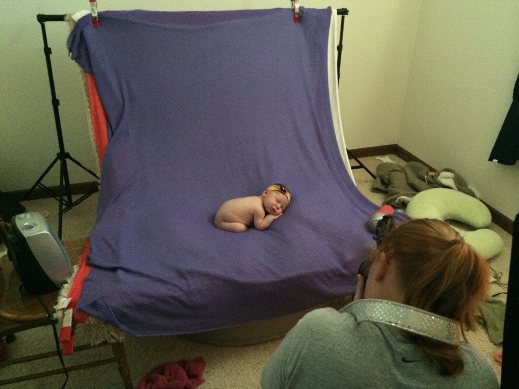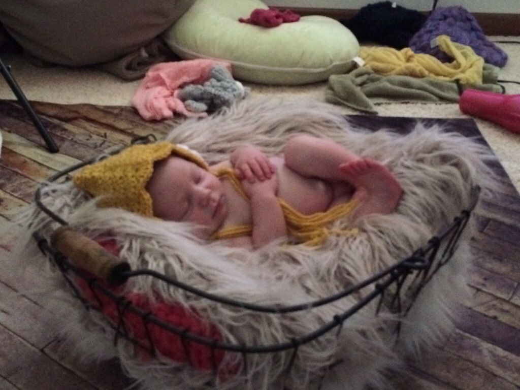 Once she was done defecating everywhere, I gave her one more boob and she finally fell asleep. Then, we moved quickly and took as many pics as possible. And oh was she cute.