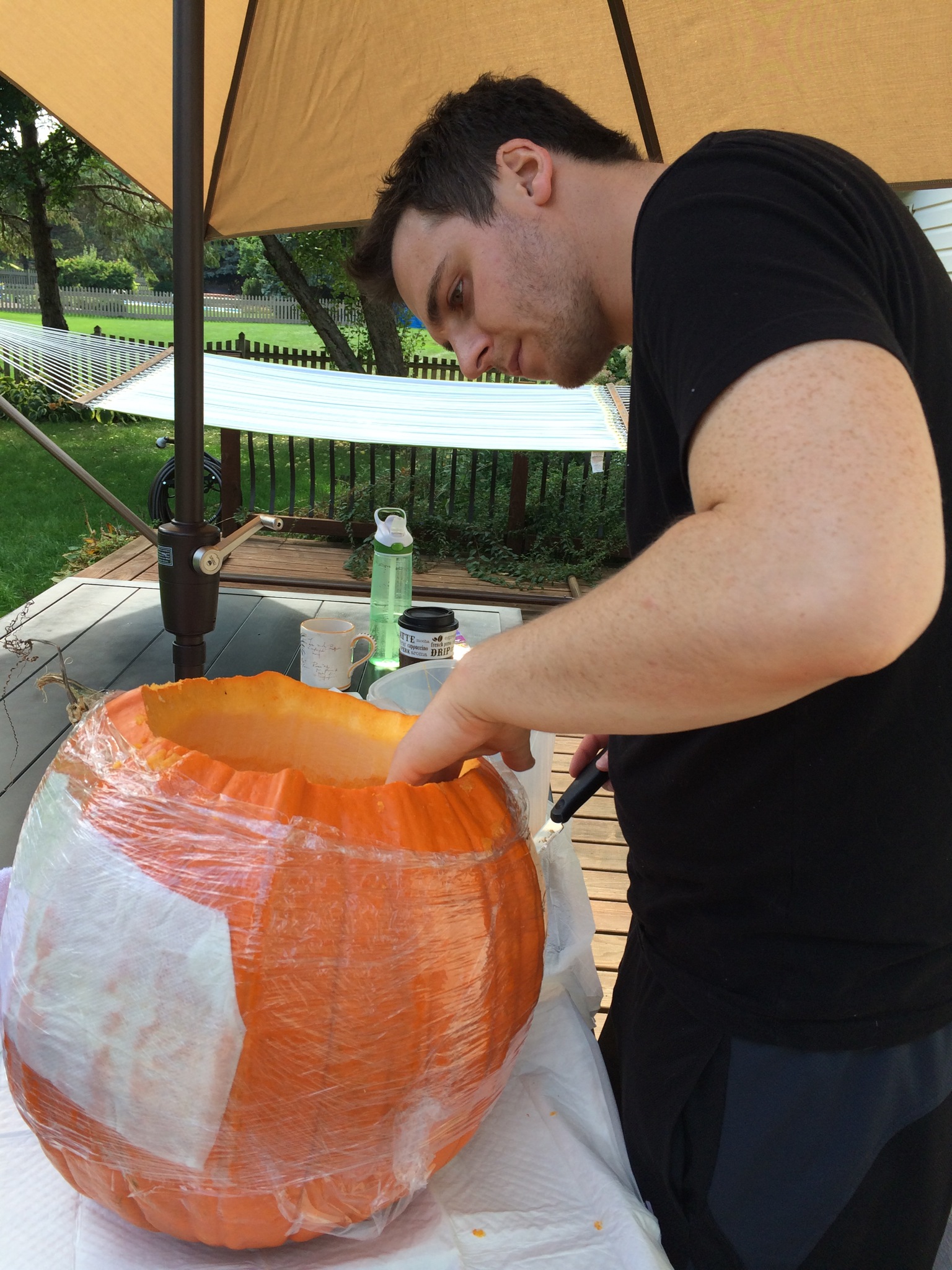 Since I found it, I’ve been trying to recreate it. So, I watched a tutorial about “scraping a pumpkin” and Mark and I got started last night.