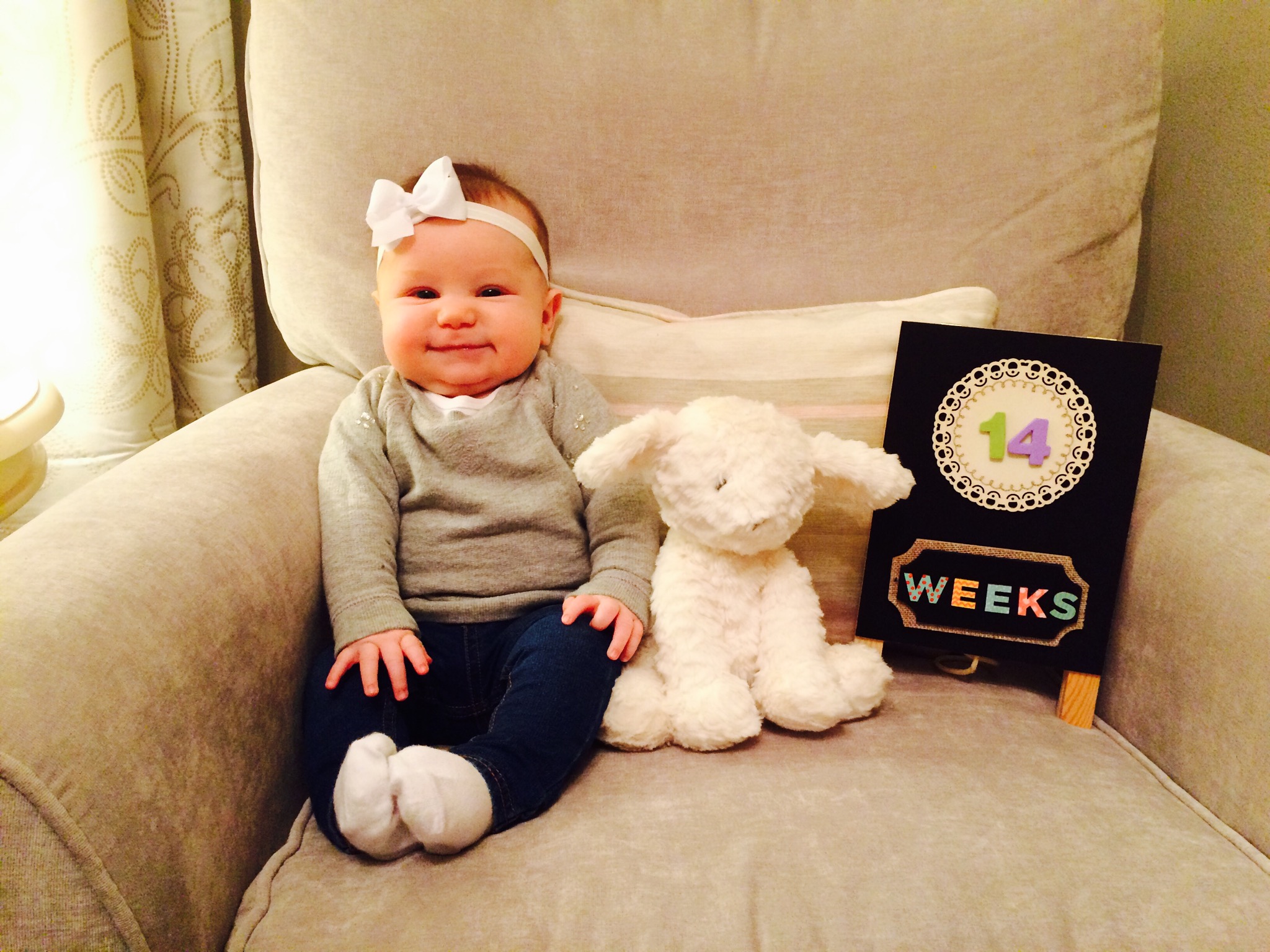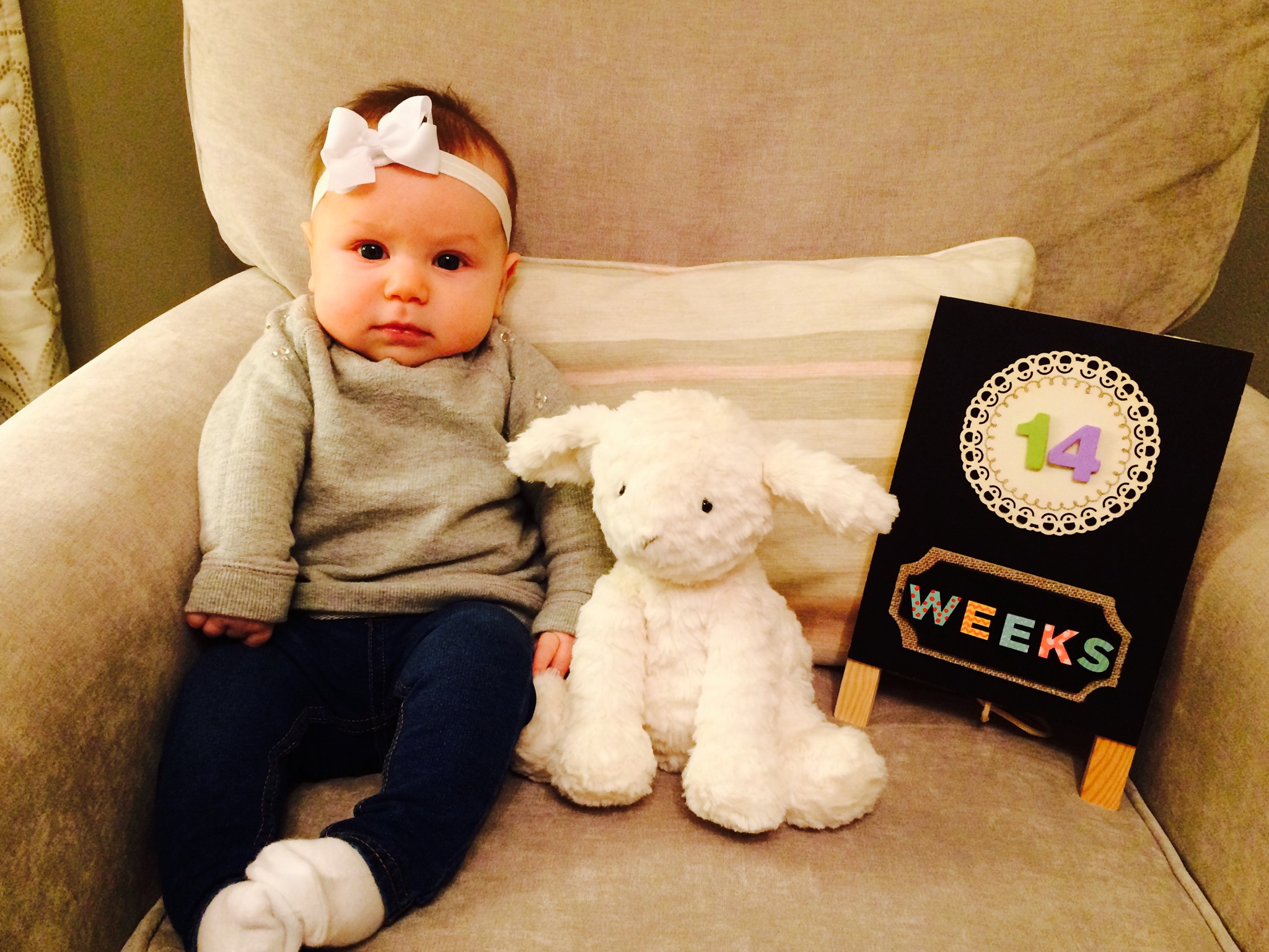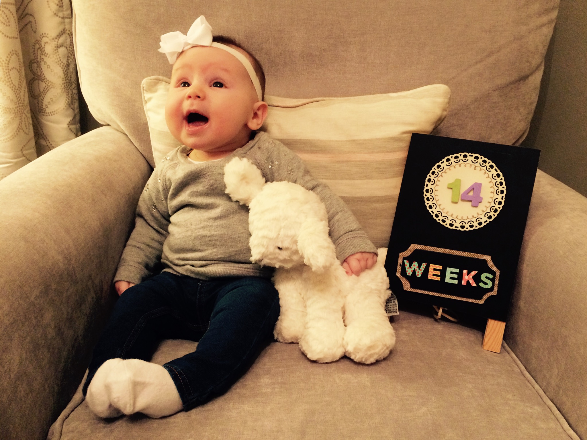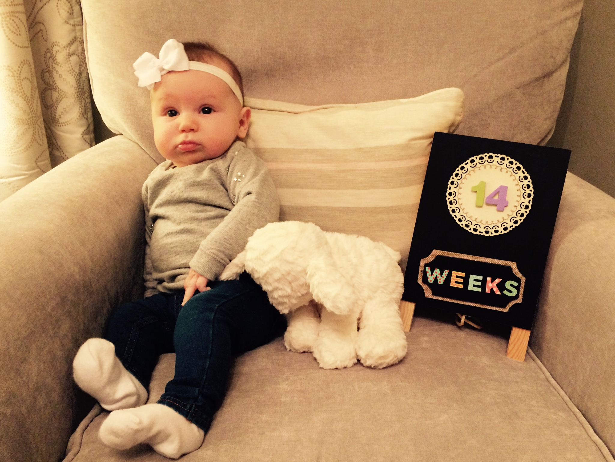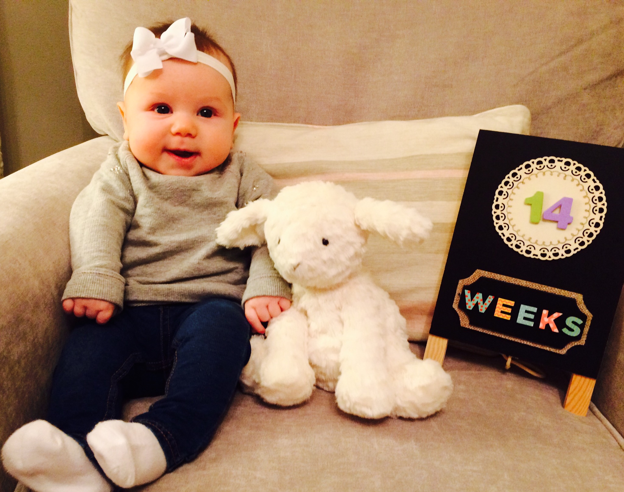 So, with everything going on last week, I forgot to post Charlotte’s 14 week update. So, here it is.