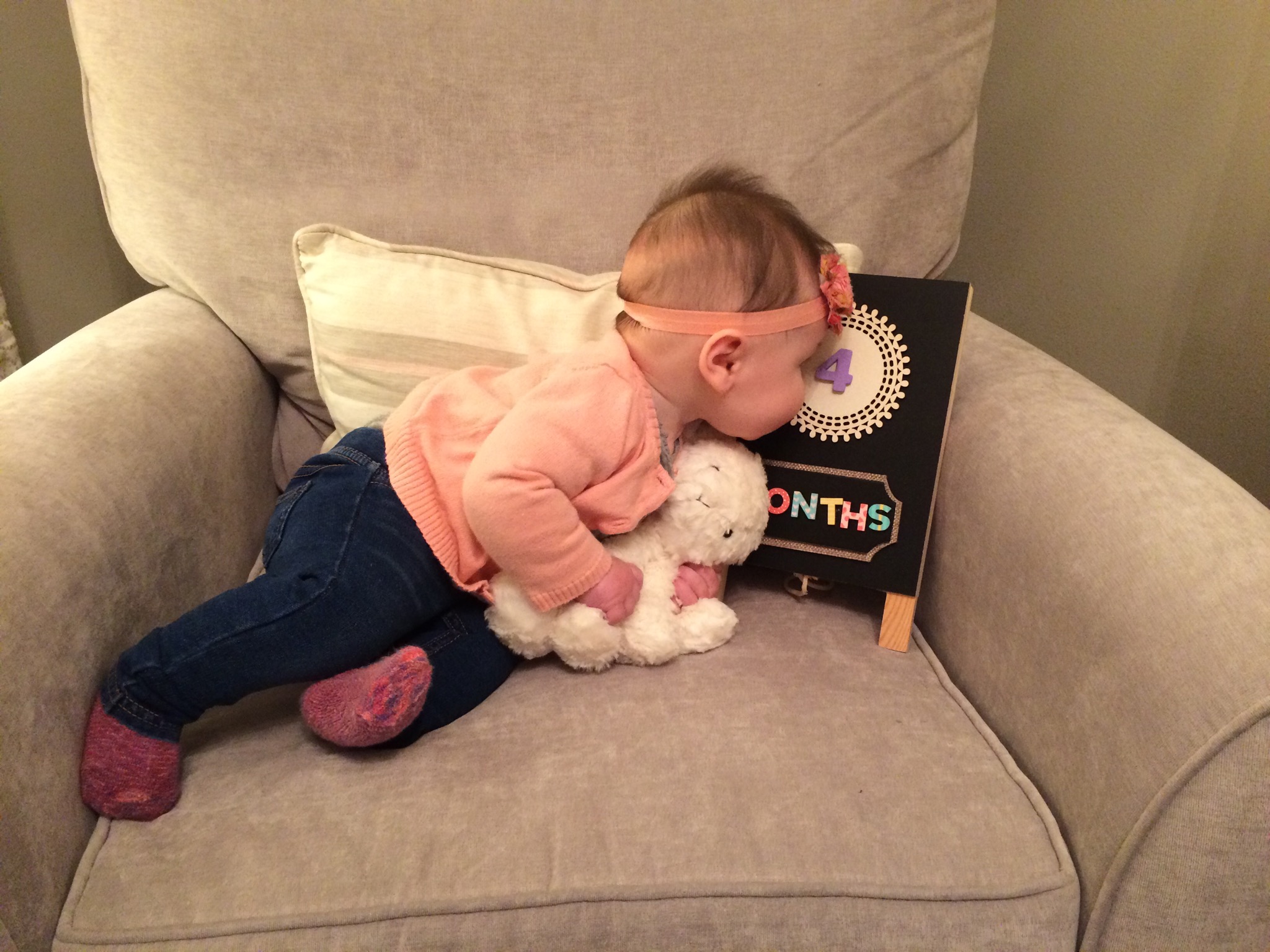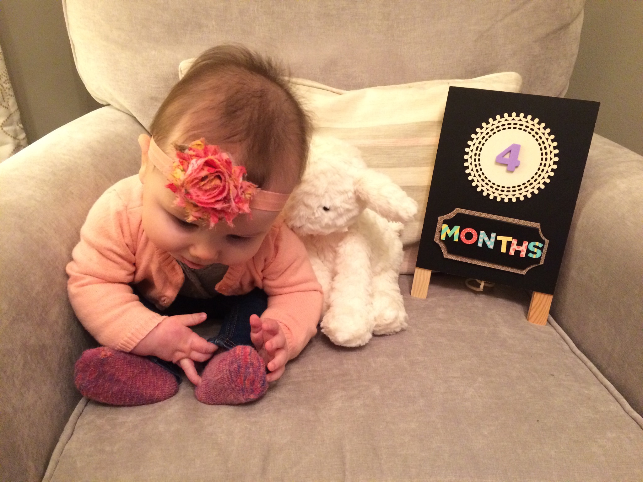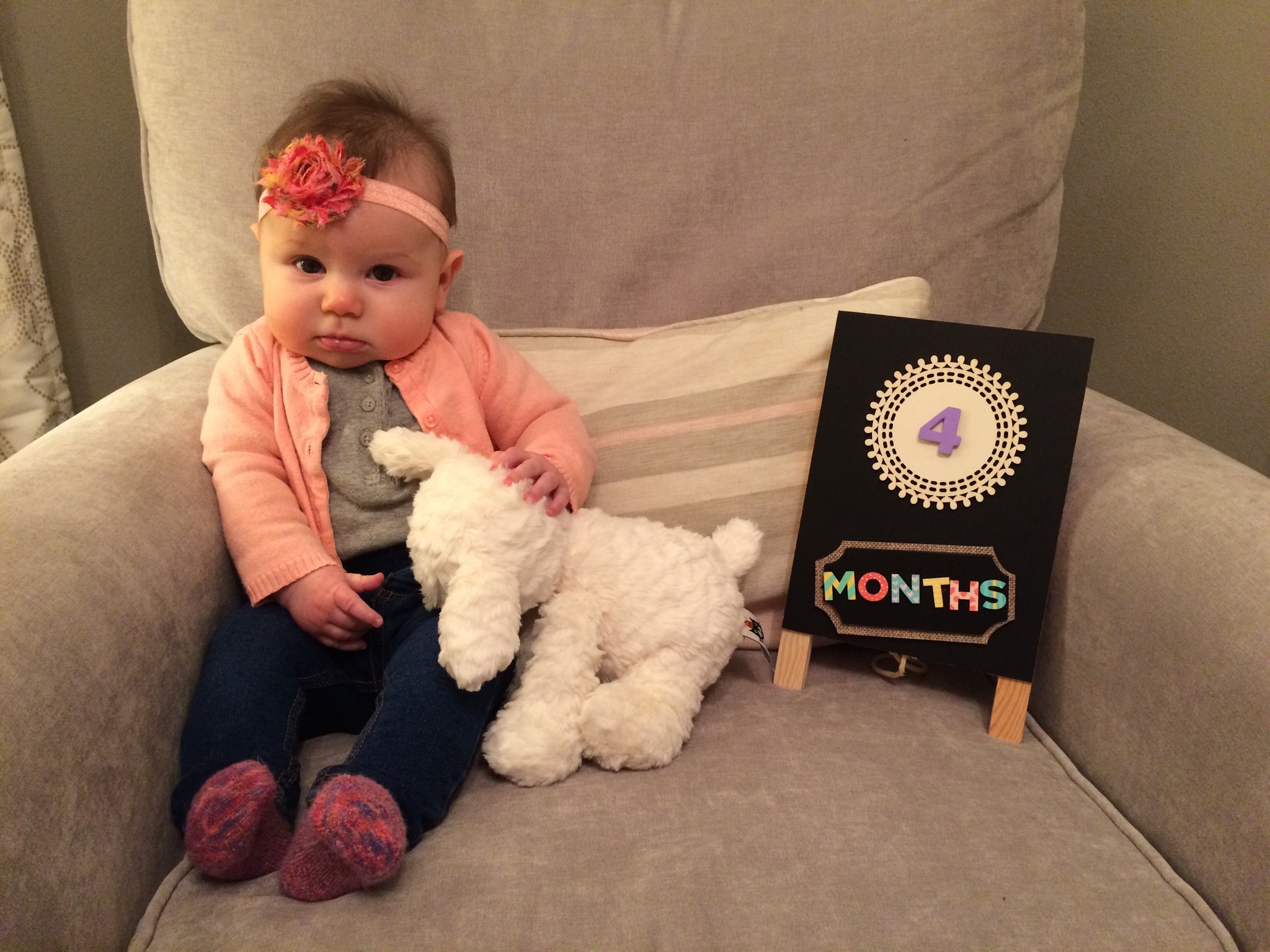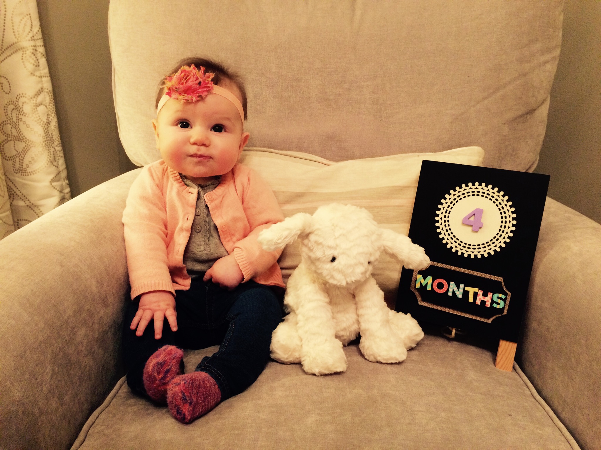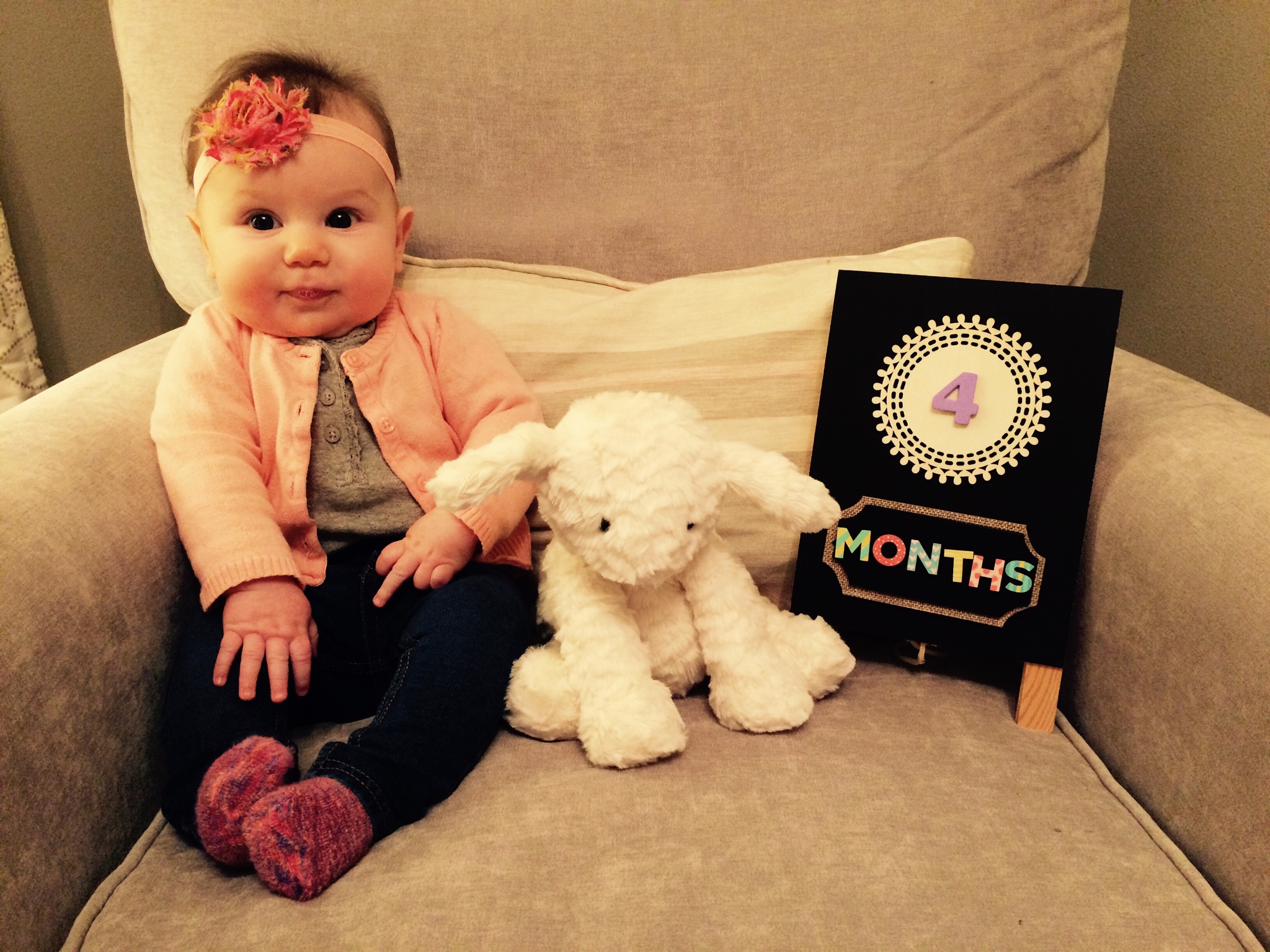 As of one week ago, our little princess turned four big months old. It’s really so crazy how fast the time has flown by. I’ve heard that I will continue to say this with each age, but I am head over heels with this age. The past month has been absolute perfection (even on crappy days like today) and it seriously gets better all the time.