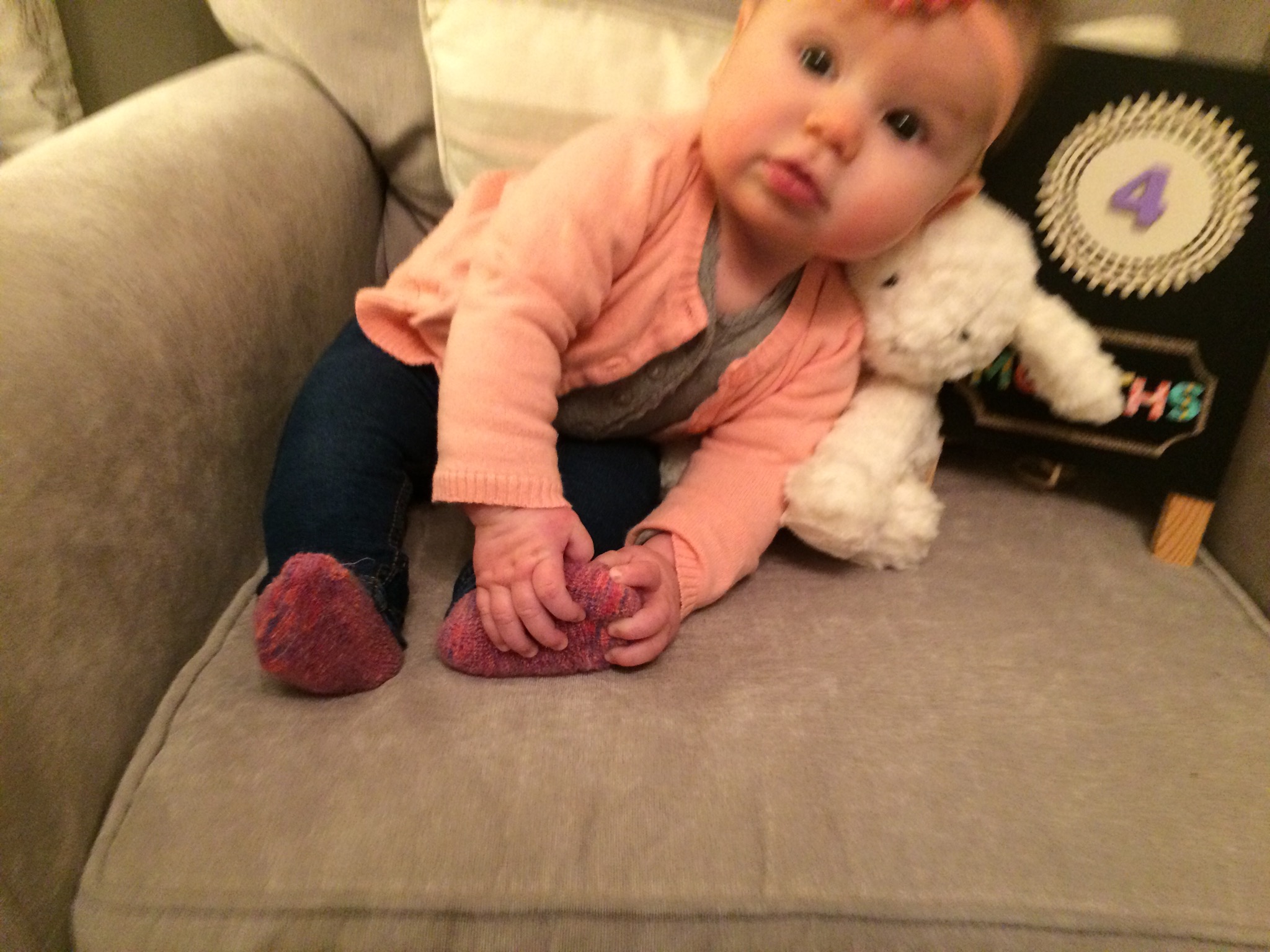 Happy 4 Months Charlotte!! Love that last picture (well I love them all- but especially the last one)…her expression is too cute!