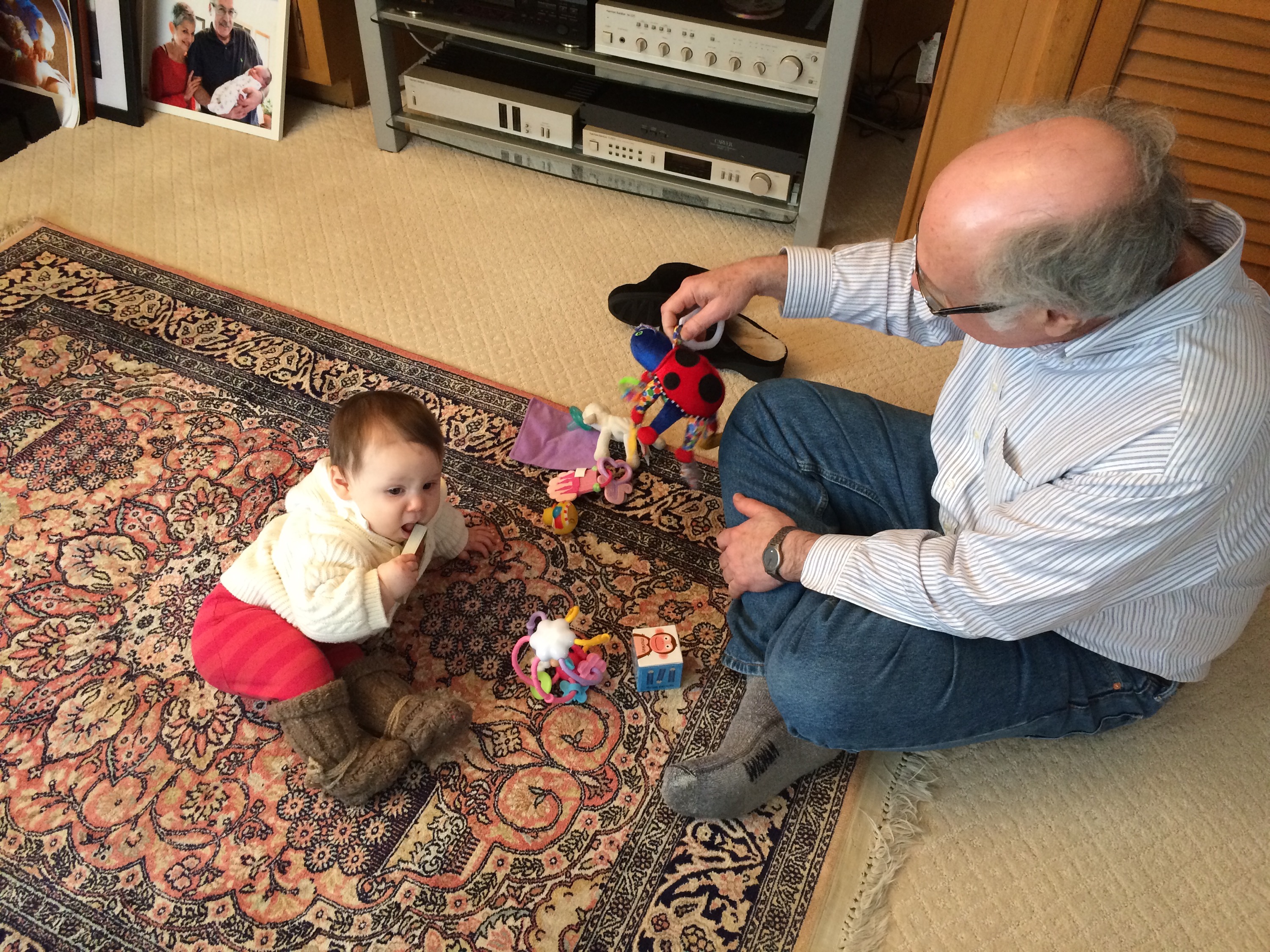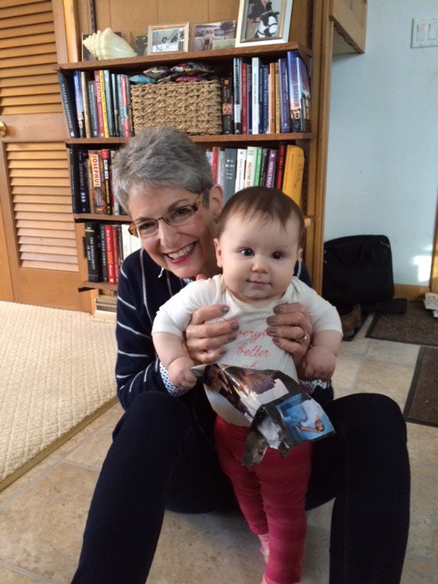 Anyway, I went in and fed her. I could tell she was in a punchy mood. She was all over the place. Pulling on my necklace, hanging on the spindles of the rocking chair, being a goof.