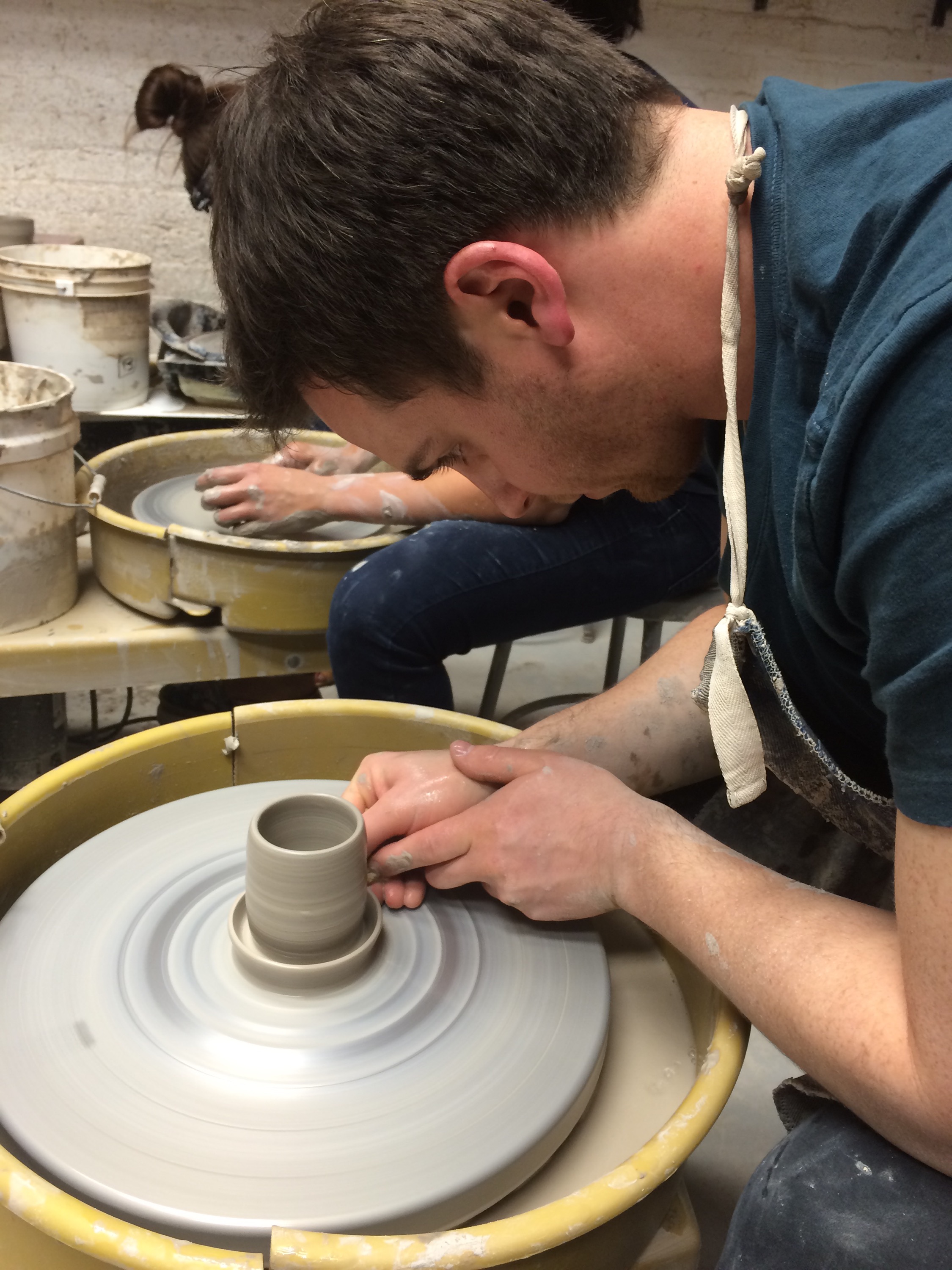 We took our delish food and headed to a place called Penguin Pottery for Happy Hour Pottery Class… Bucket List Item #2: Spinning pottery on the wheel. We sipped wine and while I attempted to make really shitty looking pots, my husband created beautiful masterpieces. He was ABSURDLY good… like, way better than anyone in the class.