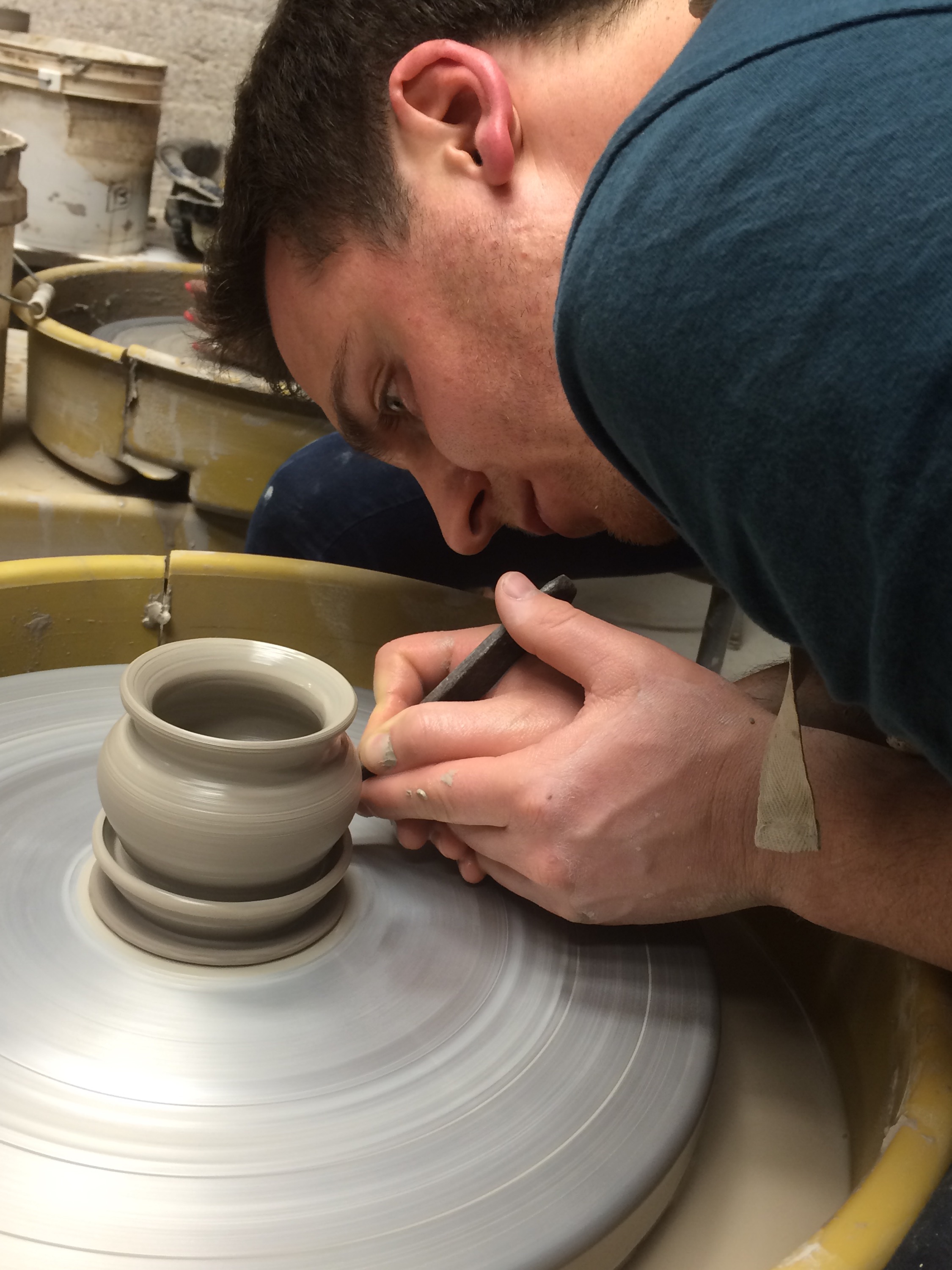 After we both discovered that I totally sucked at making pots, we started to tag team. Mark would create the pots and then I would add in fun ridges and details. It was great! We made a bunch of really great pots (and cups) that we will glaze and pick up in a couple of weeks.