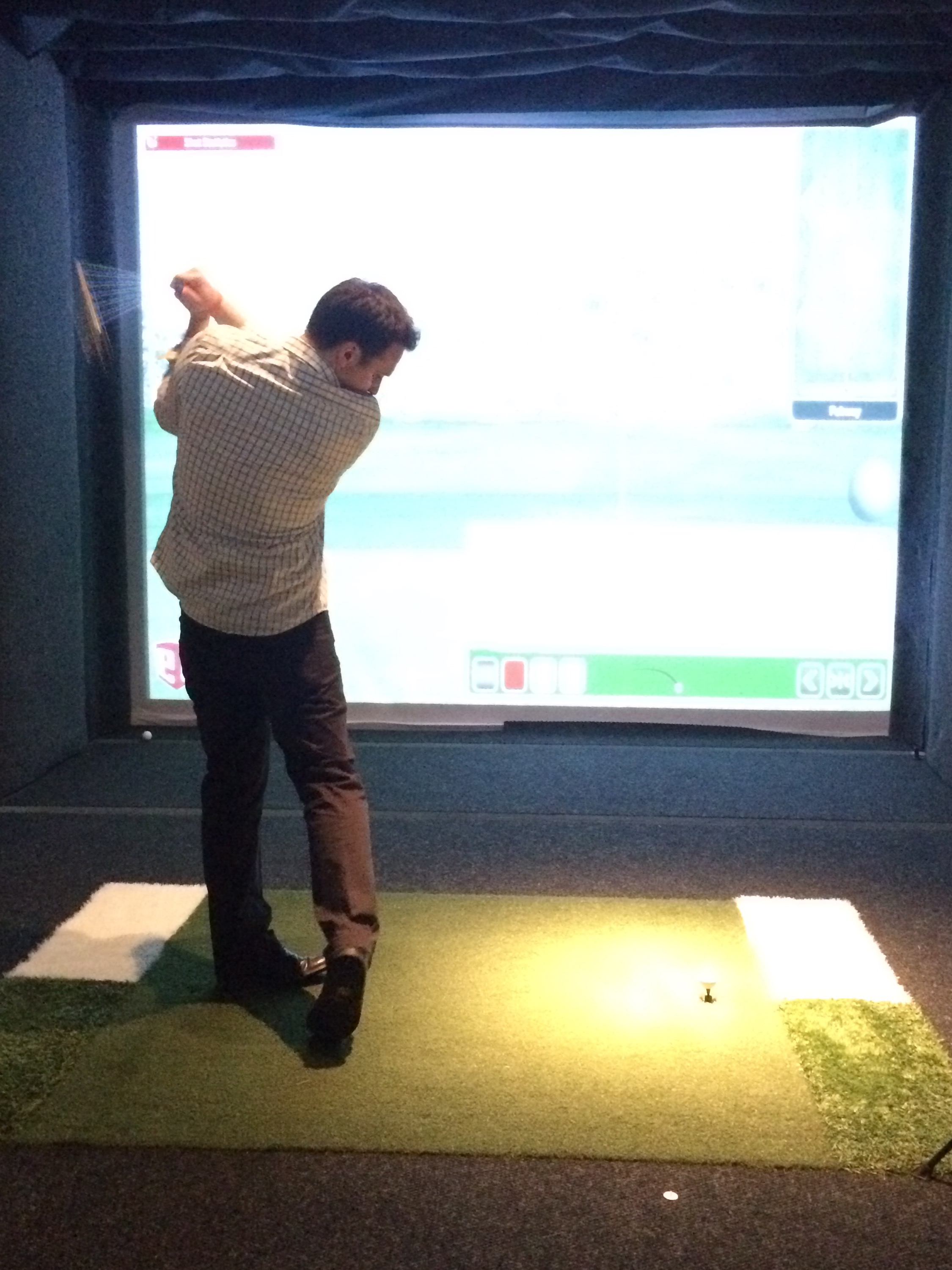 Somehow it was bar close, so we headed back to the condo. Before calling it a night, we went up to check out the rooftop garden and discovered a golf simulator. We played for a bit and then discovered that alcohol + two really crappy golfers = exceptionally bad golfing.