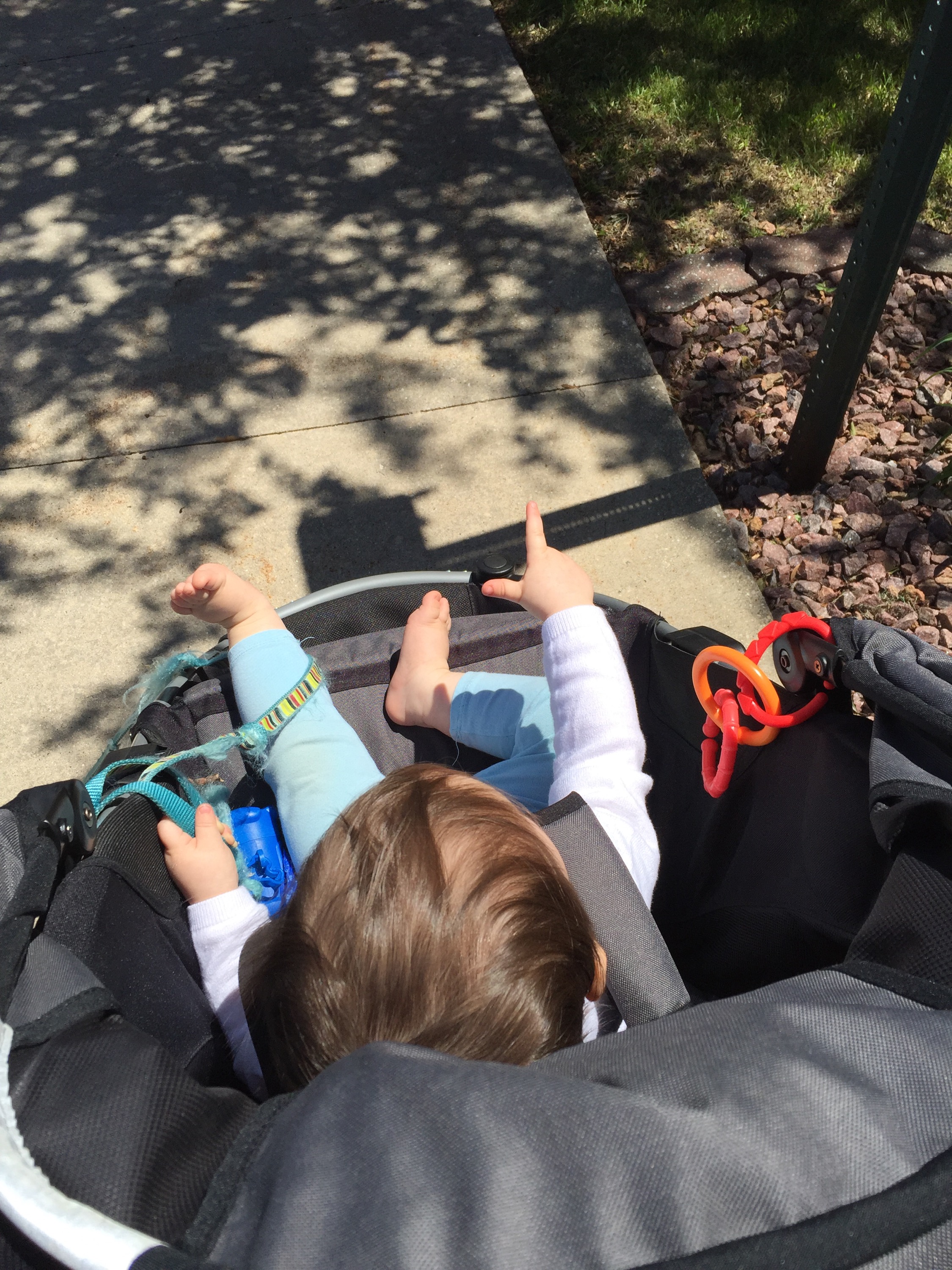 - Pointing. The little chickadee is constantly pointing at EVERYTHING. She doesn’t say anything, but in my head I hear her saying, “This? This? That? This? This? Want this! This!” Today I said, “Charlie, look at the trees” and she pointed right at them.