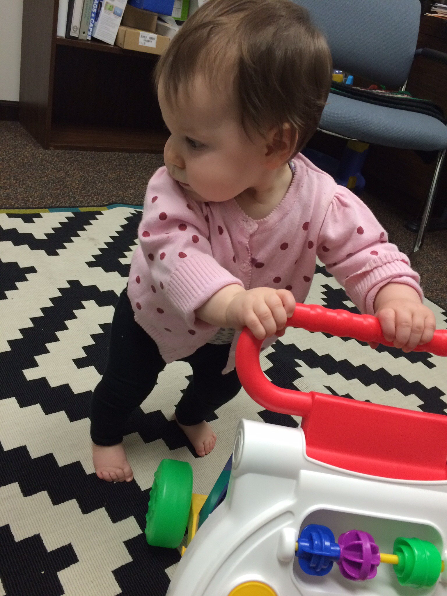 - Pulling herself up to standing. Any opportunity she gets, she’s up!