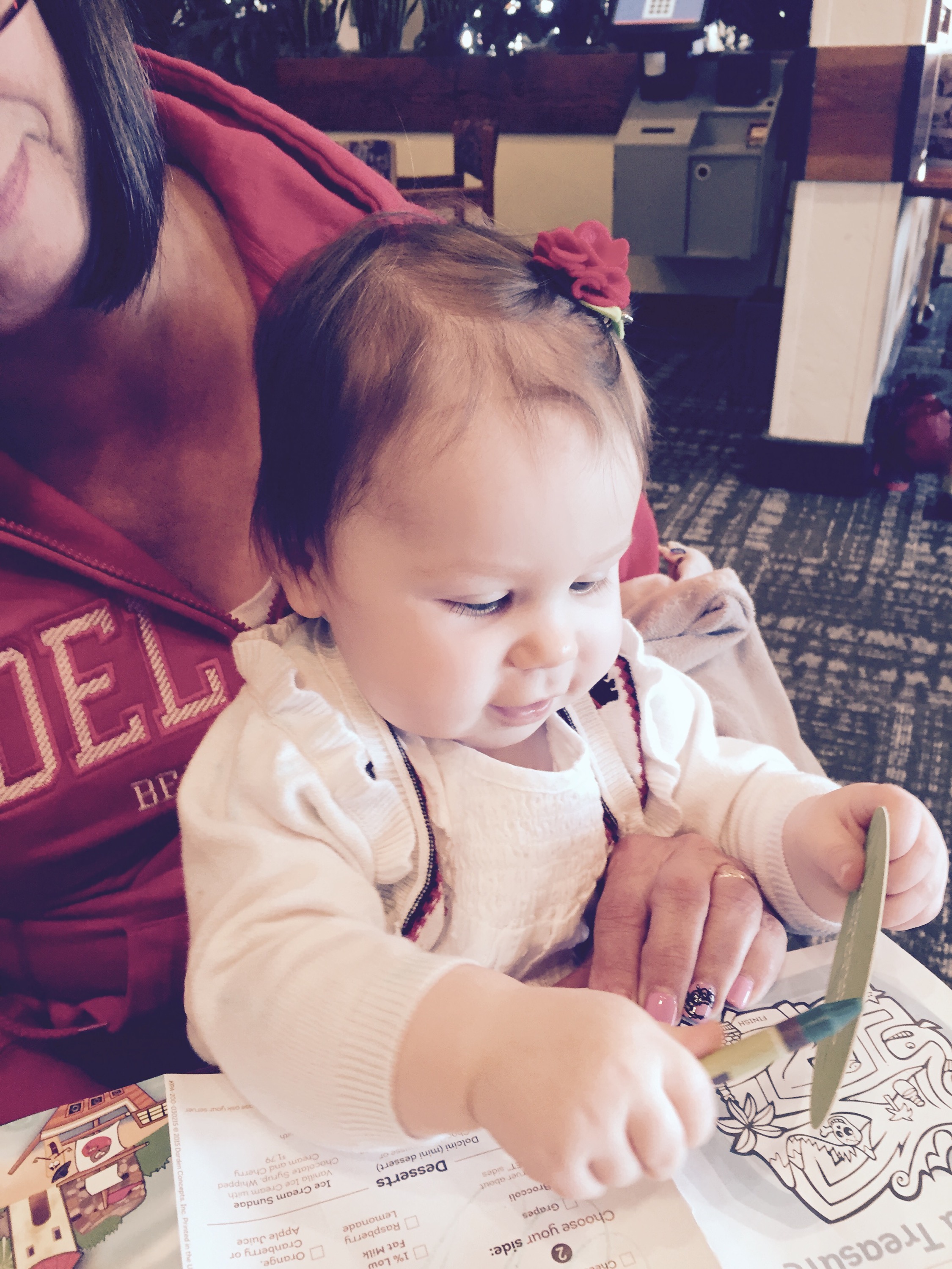 She was playing with the kids, crawling up to random strangers and asking them to pick her up with her outstretched arms… It was great!