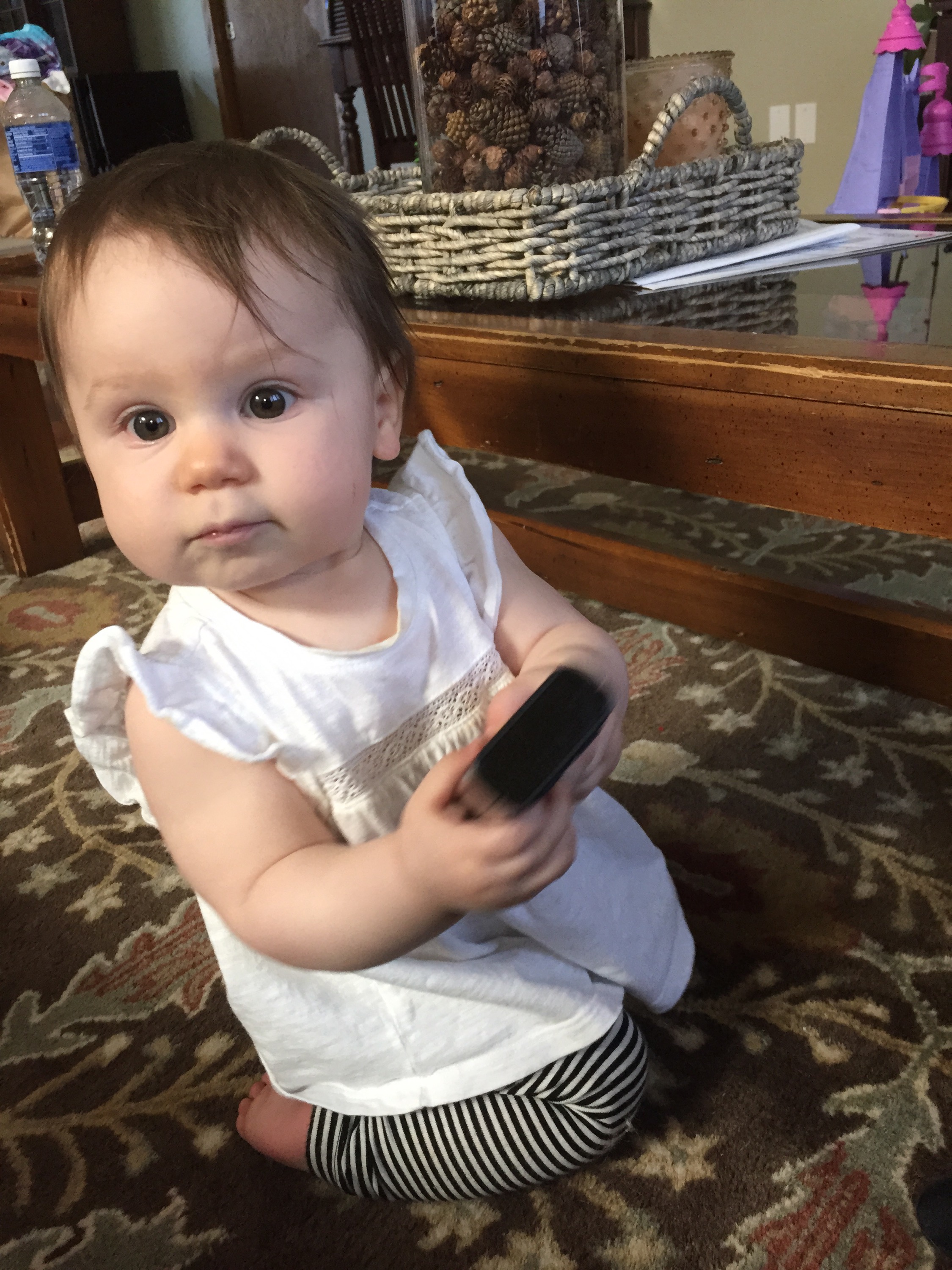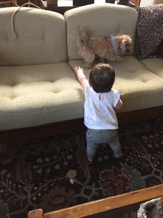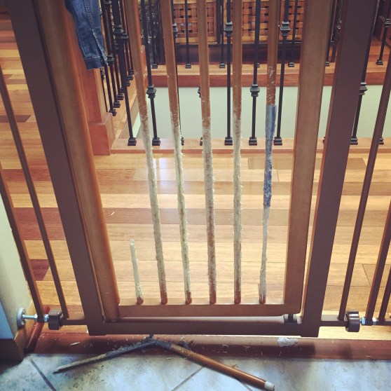 My first day alone and it was already a little rough. Charlotte was up at 5 am, she cried for about an hour this morning before going down for her morning nap, she was wildly hyper and simultaneously exhausted during our ladies’ lunch, her second nap was ended abruptly by a startling noise, she woke up screaming her face off, and then she refused to go to bed even though she was exhausted. Oh, and did I mention that our dog chewed through our wooden baby gate (finally after two years of hard work destroying the damn thing – thankfully he wasn’t hurt by the scary death trap).