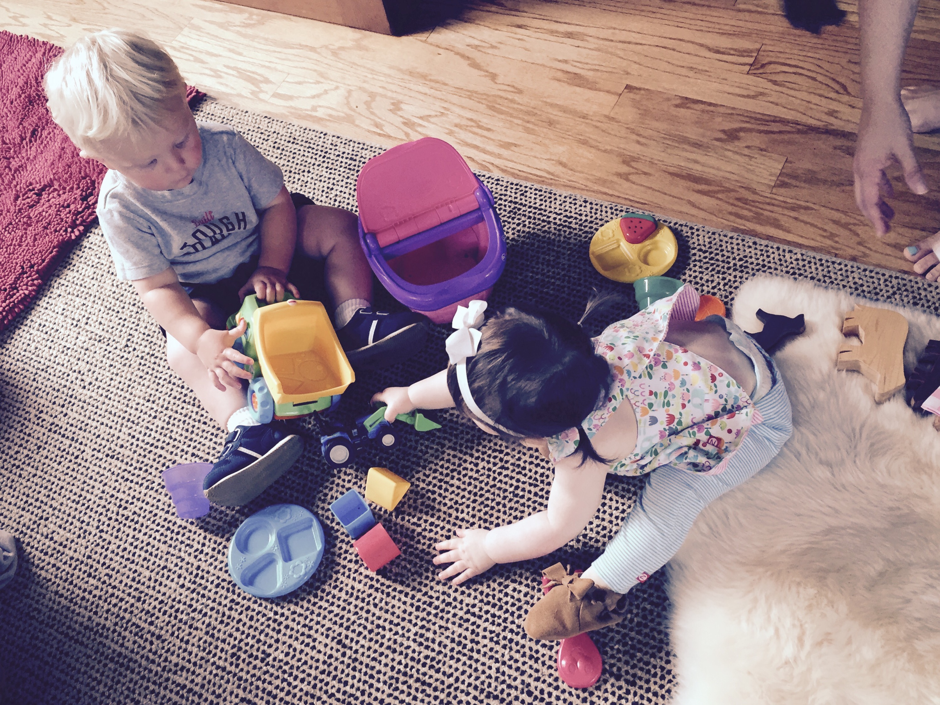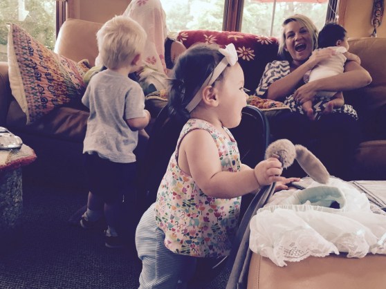 As we all sat around the living room, I couldn’t help but laugh at our “new normal.” Two of my girlies were rocking cover-ups as they nursed their newborns, while Charlotte and her baby bestie, Phoenix, played with toys on the floor.