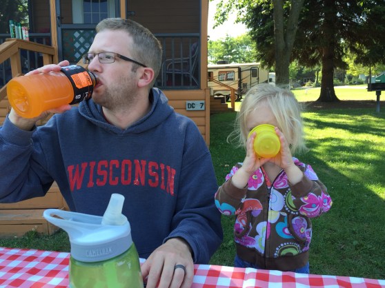 Two weekends ago, we went on our first annual camping trip with our friends Annie, Josh and their sweet 2-year-old, Ellie. We rented a cabin at a cute little campground in Plymouth, WI and gave the kiddies some mild exposure to the great outdoors.