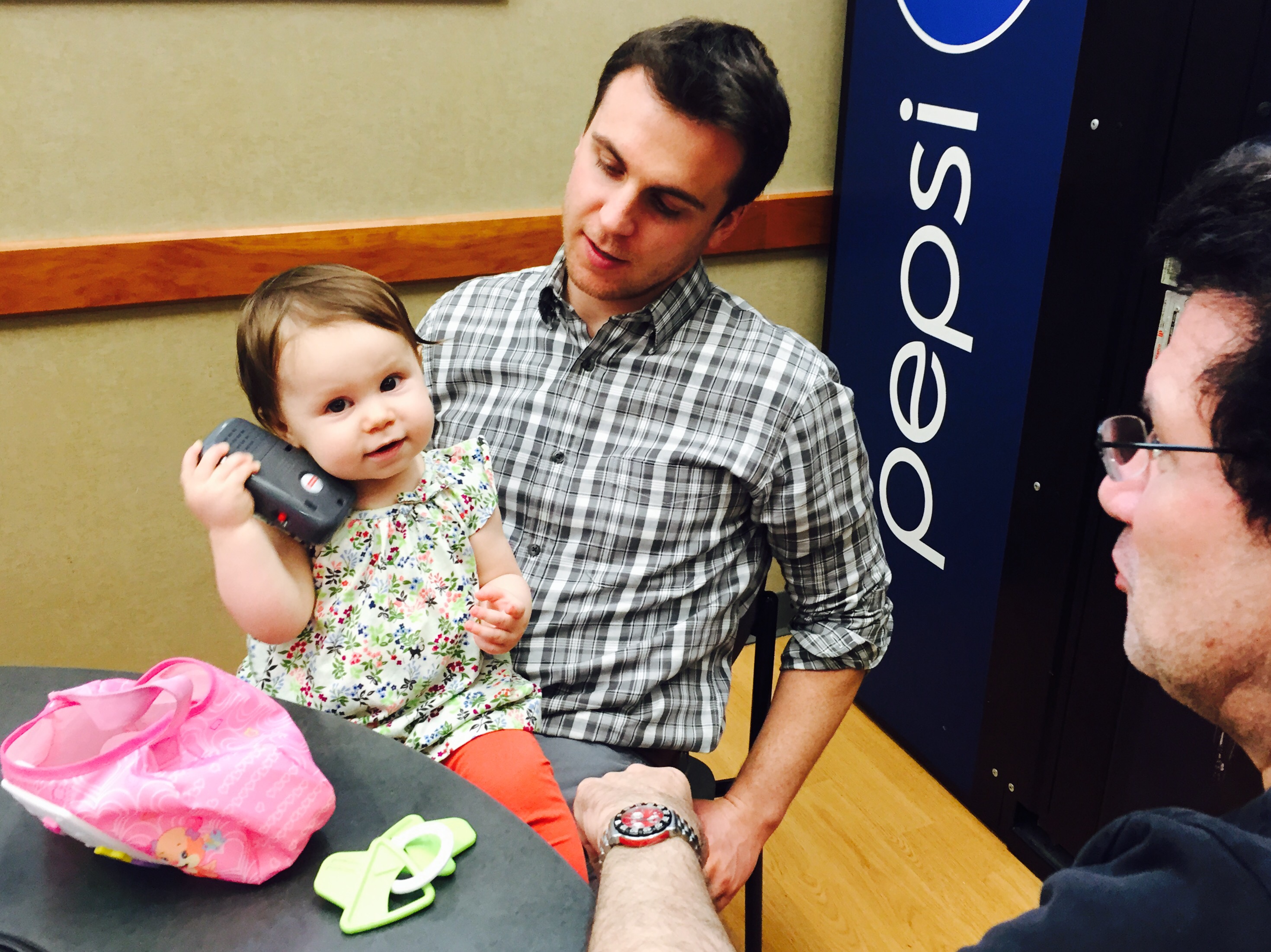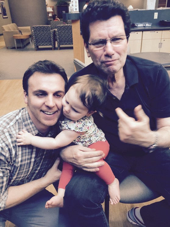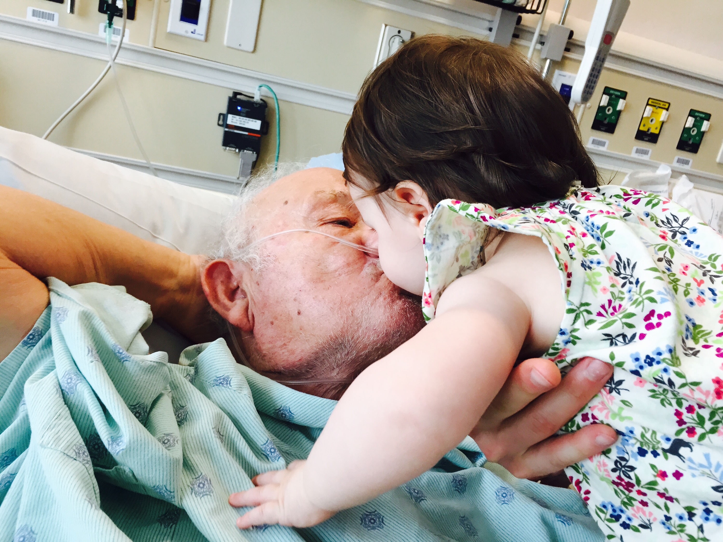 After his procedure yesterday, Charlie was ready with tons of smooches and love for Grandpa. She would whine and lean towards him with her lips puckered, just waiting for us to lean her over to give Gramps more kisses… she loves her Great Gramps.