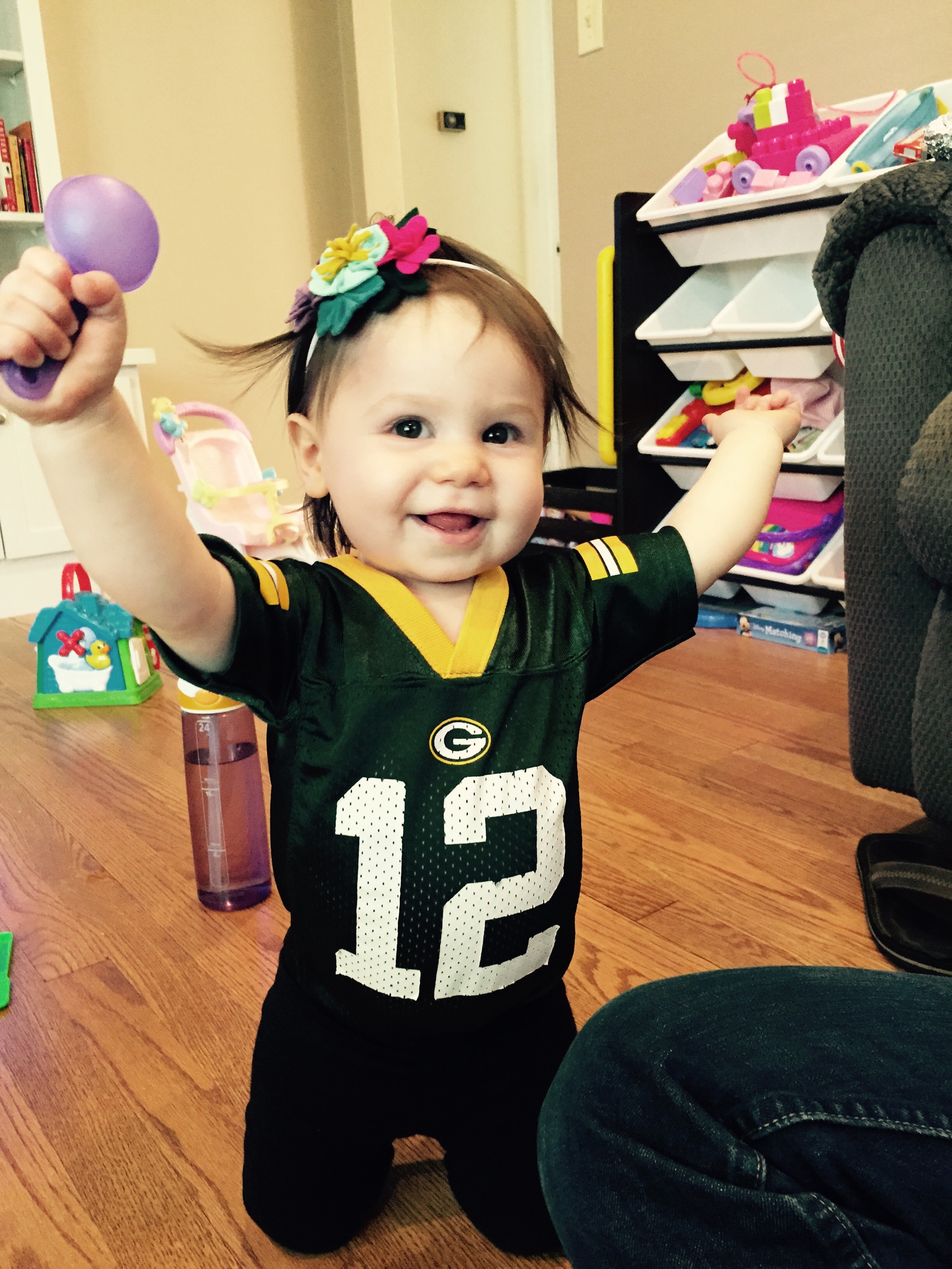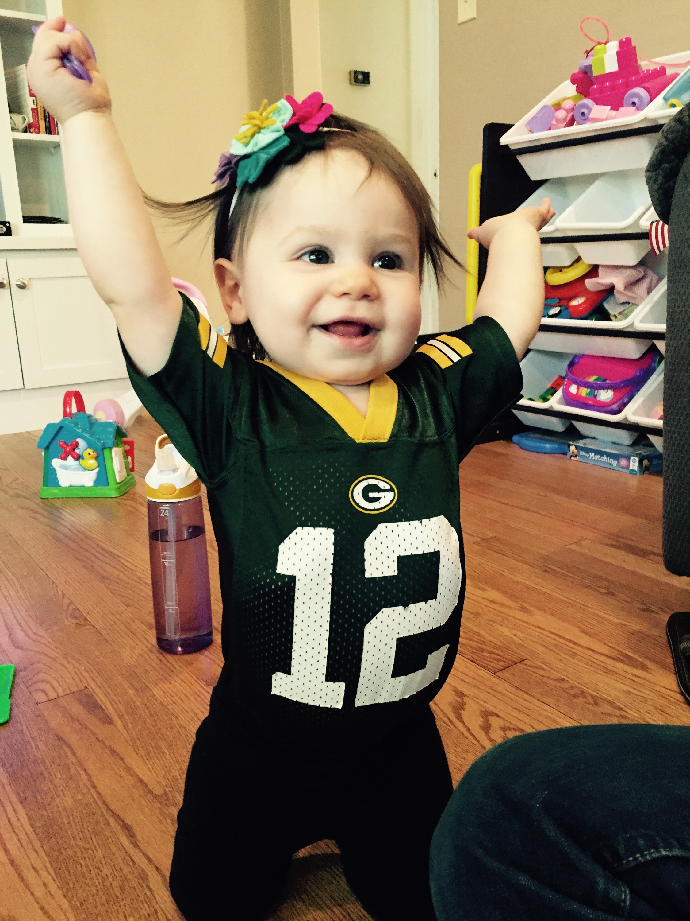 Ahhhh!!! I’m in love with that little Aaron Rodger’s jersey!!! I need to get one for P (maybe when she’s finally a little bigger and it doesn’t look like she is drowning in it).