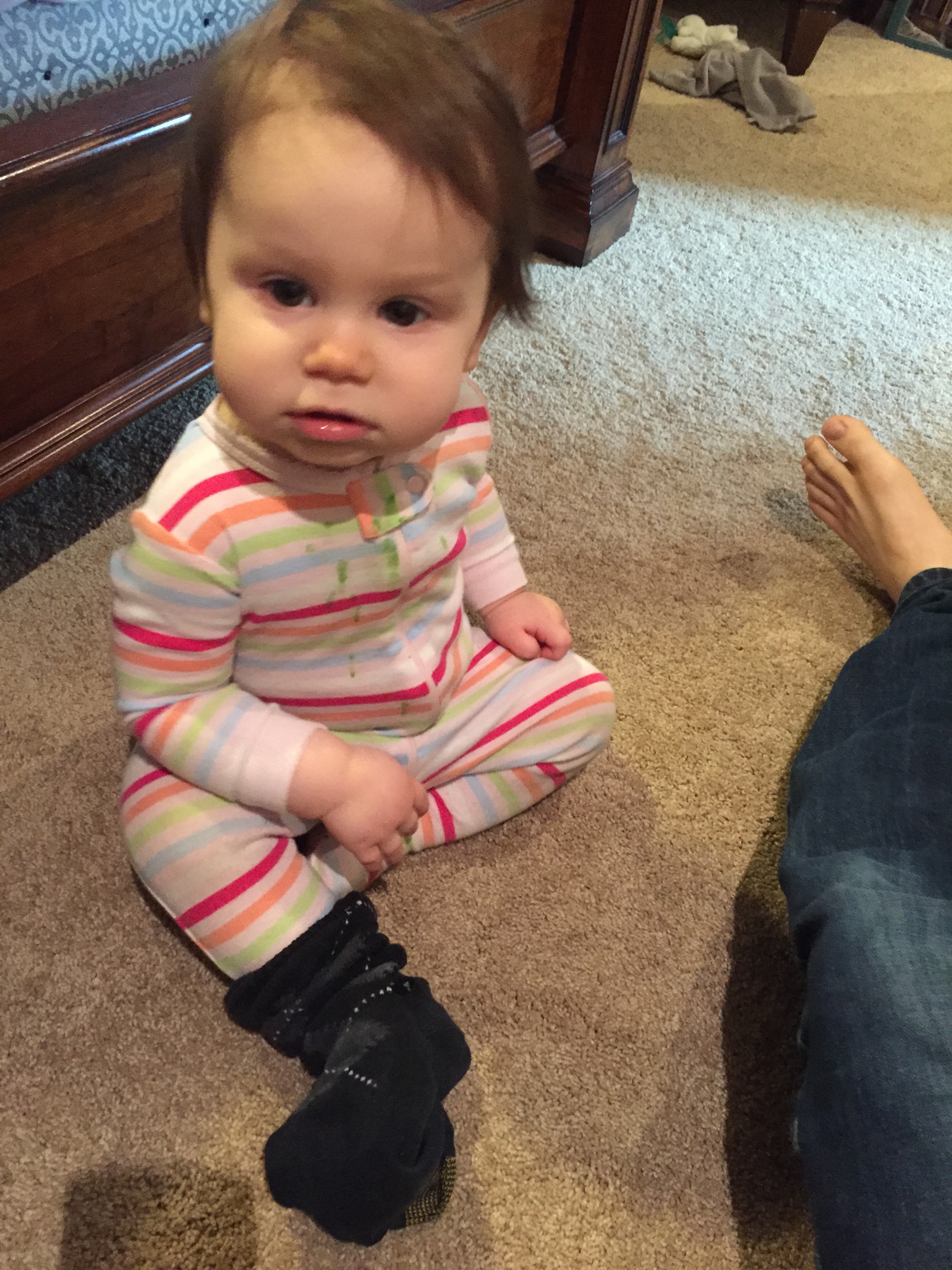 Charlotte has been fixated on dressing herself lately. She’s constantly taking headbands and lifting them up over her head, around the back of her neck and then letting them snap off. Clearly she hasn’t mastered this art yet.