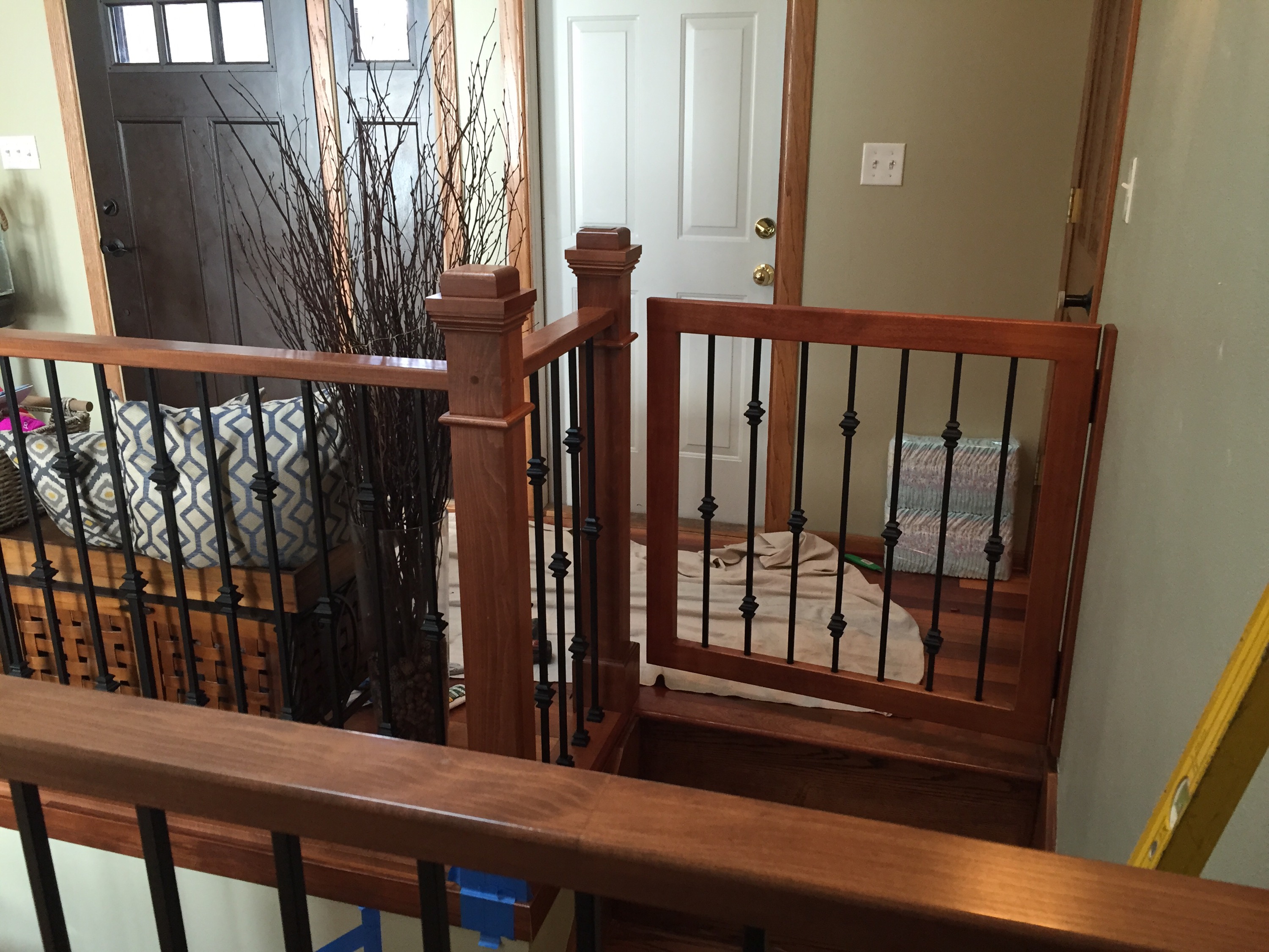 • We finally got our custom baby gate/staircase protector installed. THANK GOODNESS. I’m so sick of racing Charlotte to the stairs.