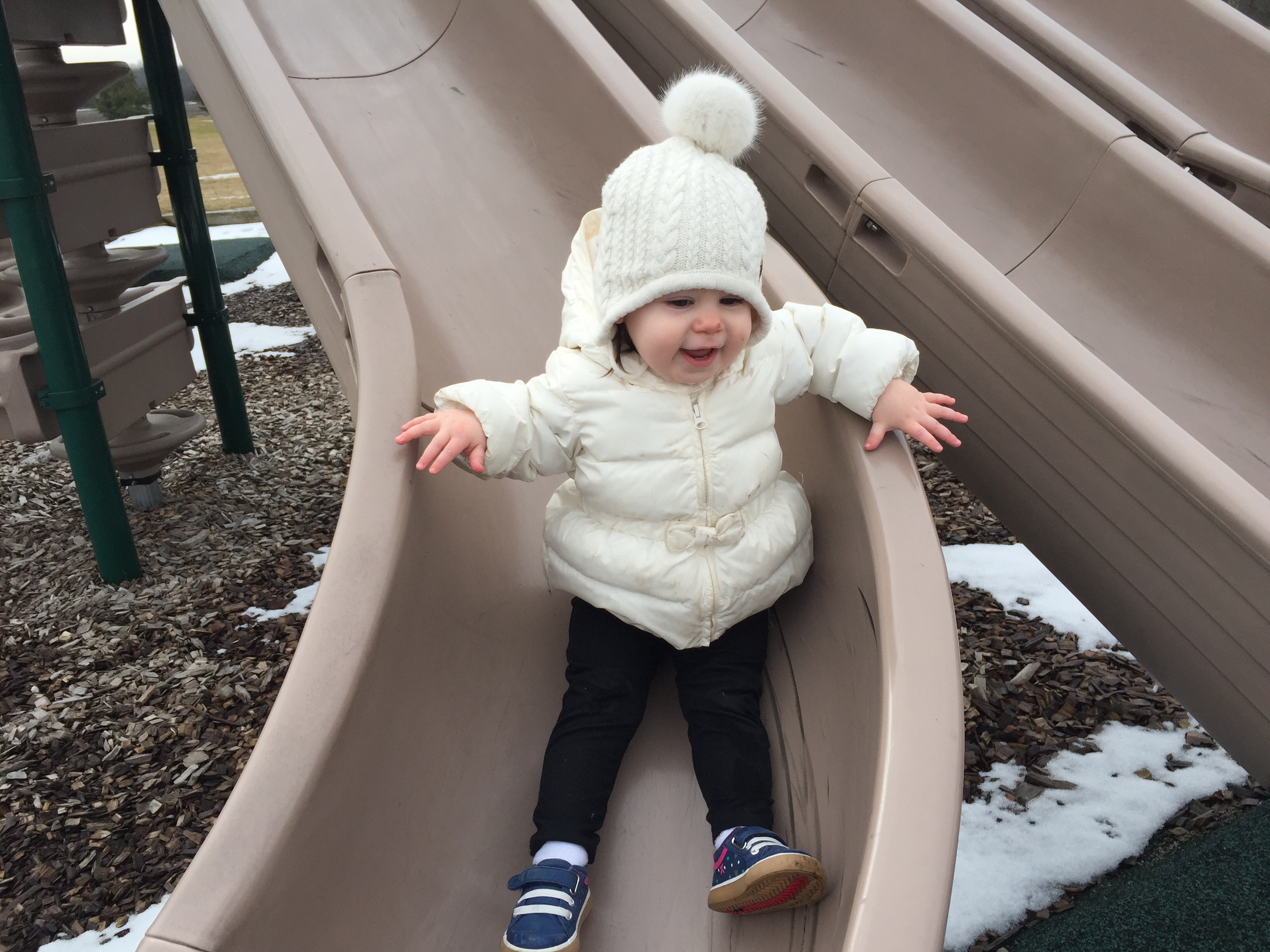 As soon as she realized her little mistake, she booked it to Daddy’s arms while I proceeded to cry from laughing so hard.