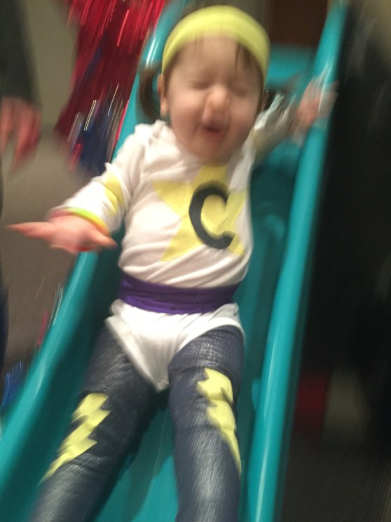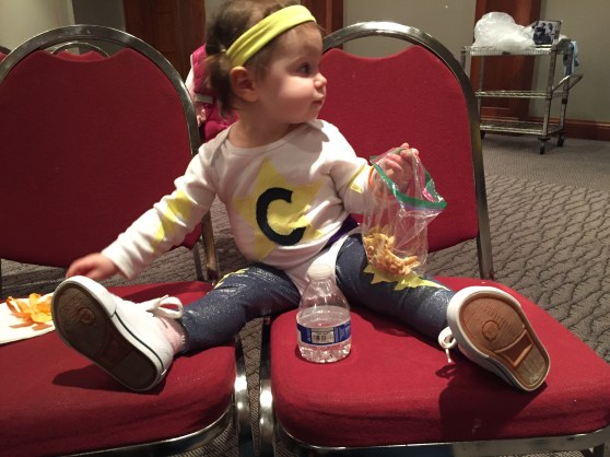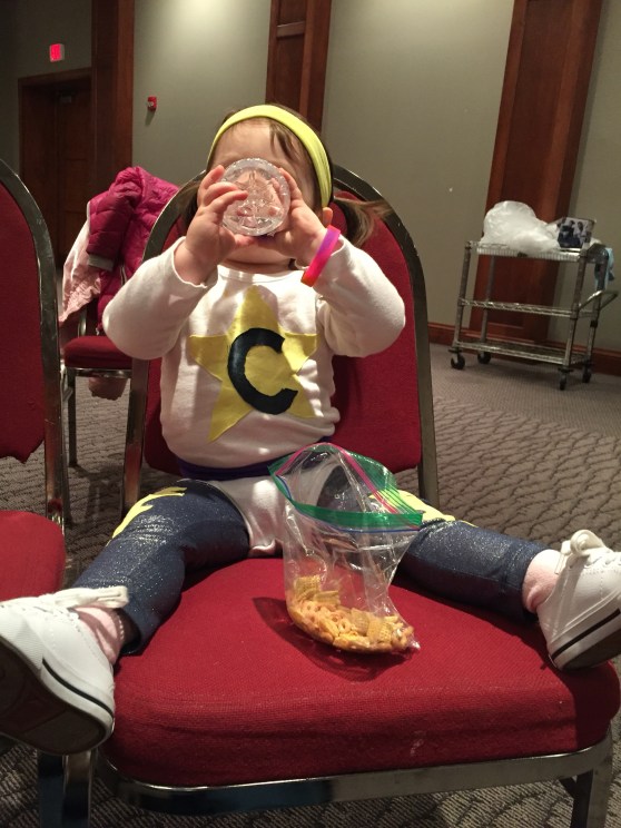 Funny story… it was around 8:45pm and C was turning into a wild woman. Definitely still behaved, but hyper… my mom would refer to her mood as “punchy.”