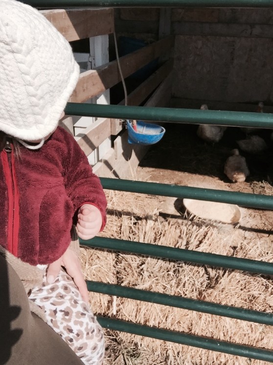 After gymnastics, we decided to head over to a local farm that welcomes guests. Unfortunately, they were closed for winter; however, the gentleman allowed us to come check out the few animals they had at this location… one chubby bunny, a ton of the LOUDEST, squakiest ducks and 3 pigeons.