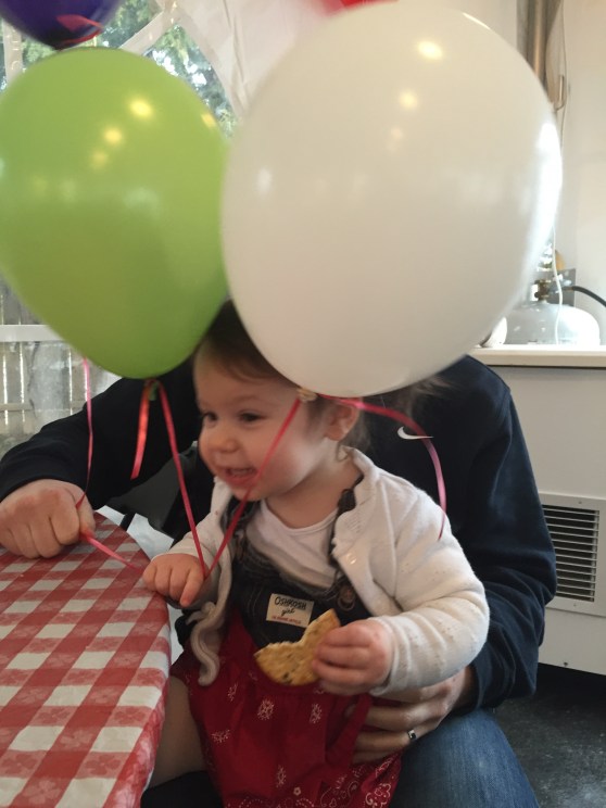 That evening, we went to my sweet Carrie’s son’s 2nd birthday party! It was a farm theme and absolutely adorable! Charlie loved it! She played with balloons and toy animals, ate applesauce, cake and berries and got to be with mom and dad. What could be bad?