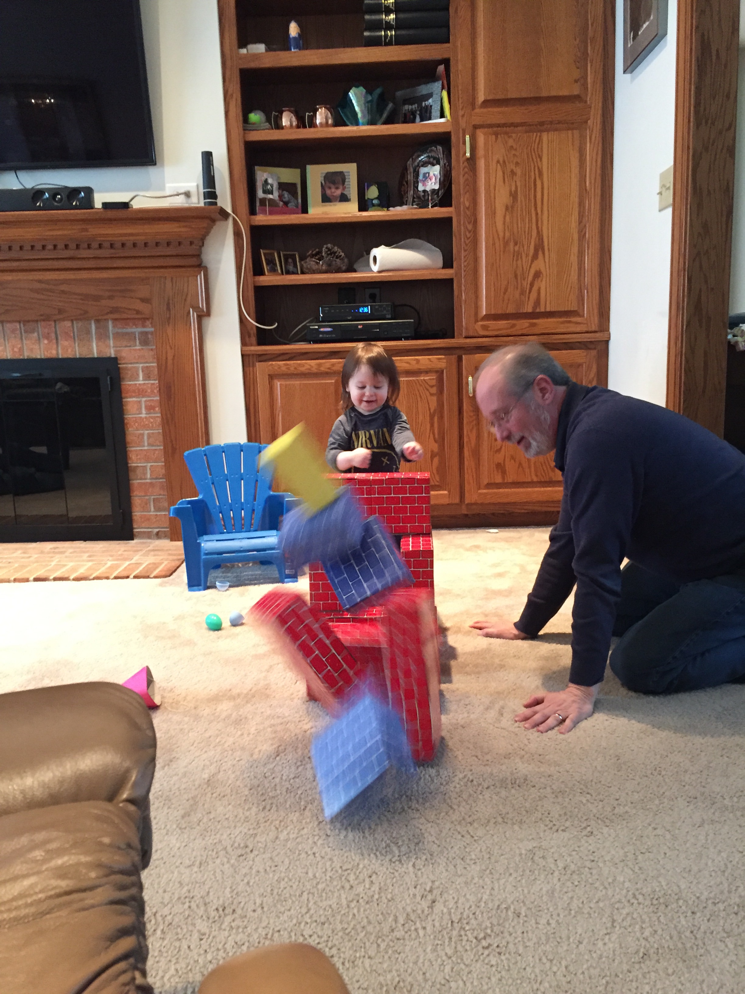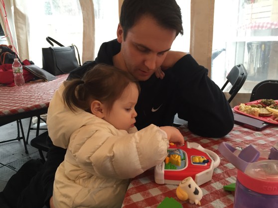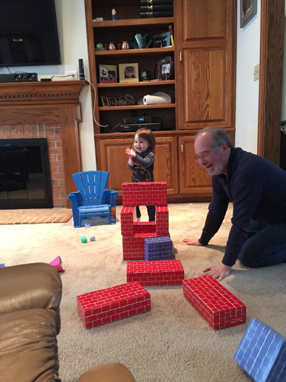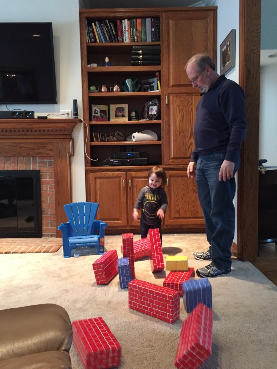 After our errands, we went to my parents’ house for brunch and some playtime. Then, post-nap, Mark’s Dad and Step Mom came over for a pizza dinner.