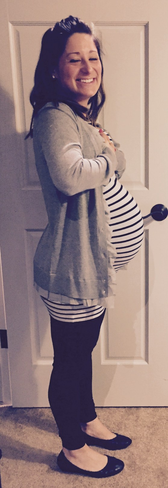 Total weight gain: As of last week, my weight gain was at 29 lbs. I think I’m starting to get used to my big, giant belly, because it doesn’t seem that shockingly large to me lately. However, I definitely still feel clunky and feel like the little man would like a bit more space. Or maybe I’d just like him to have a bit more space.