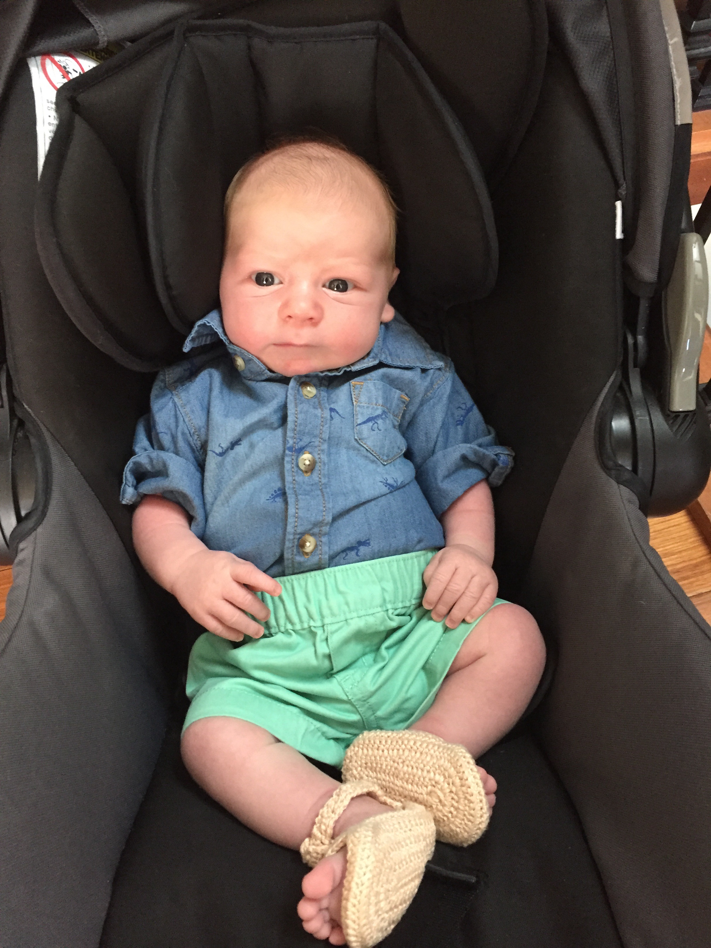 He also seems so dang strong. He pushes off on me with his legs and hangs out in a standing position. He also sits upright in my arms with his head totally self-supported. He’s a tough cookie.
