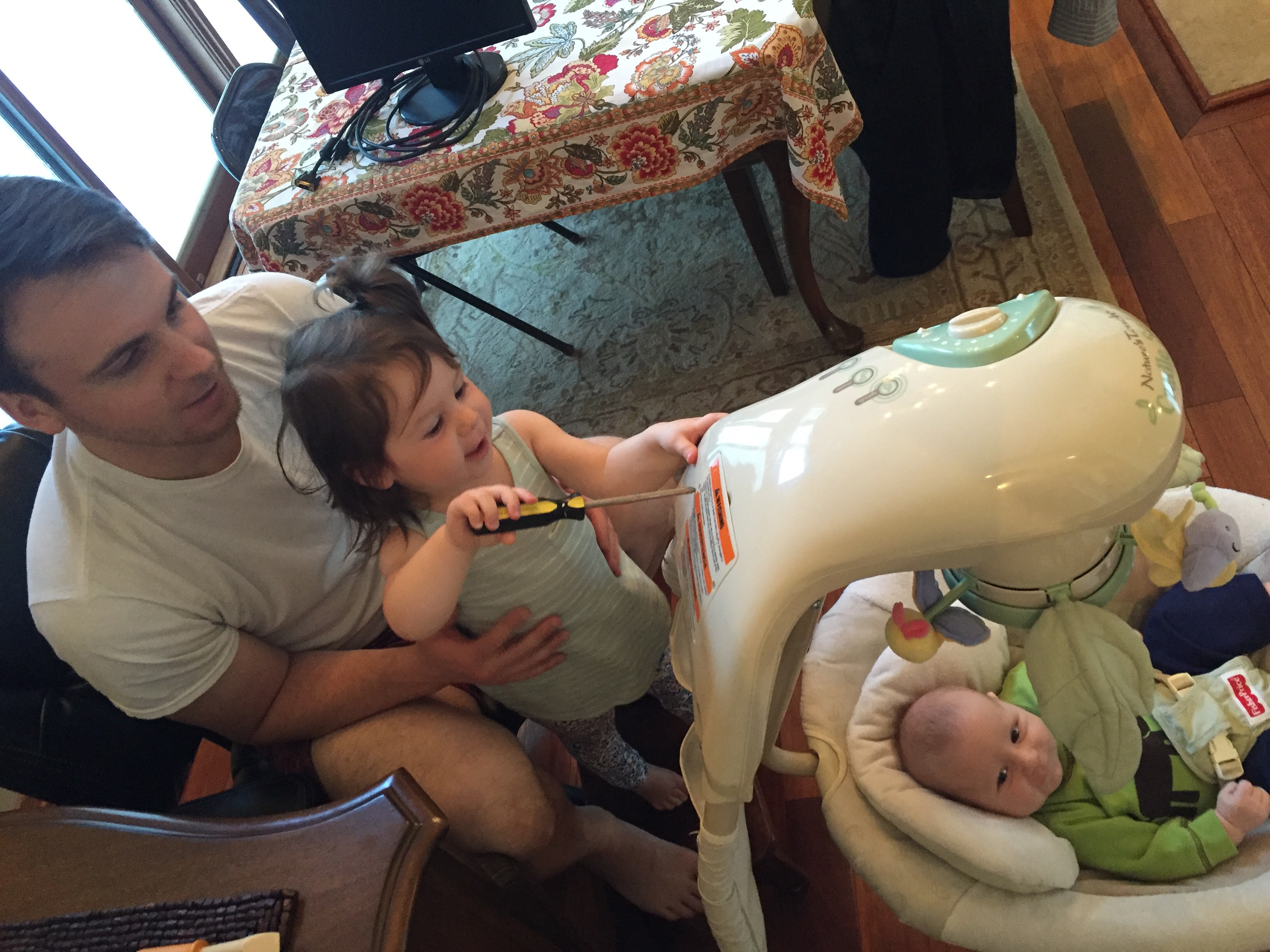 I also had good playtime with the kiddies and got to watch Mark teach Charlie to change batteries and use a screw driver (damn battery-eating swing!).