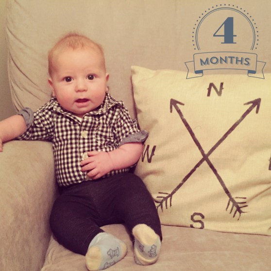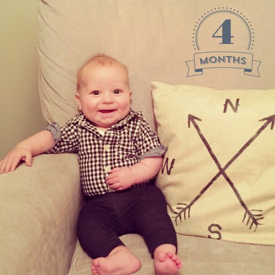 Weight: Henry went to the doctor on Tuesday of last week for his 4-month check up and HOLY MOLY. He’s HUGE! A whopping 18 lbs, 5 oz (91st percentile). I mean, little Charlie (who is also on the average to big side of things) only weighs 27 lbs.