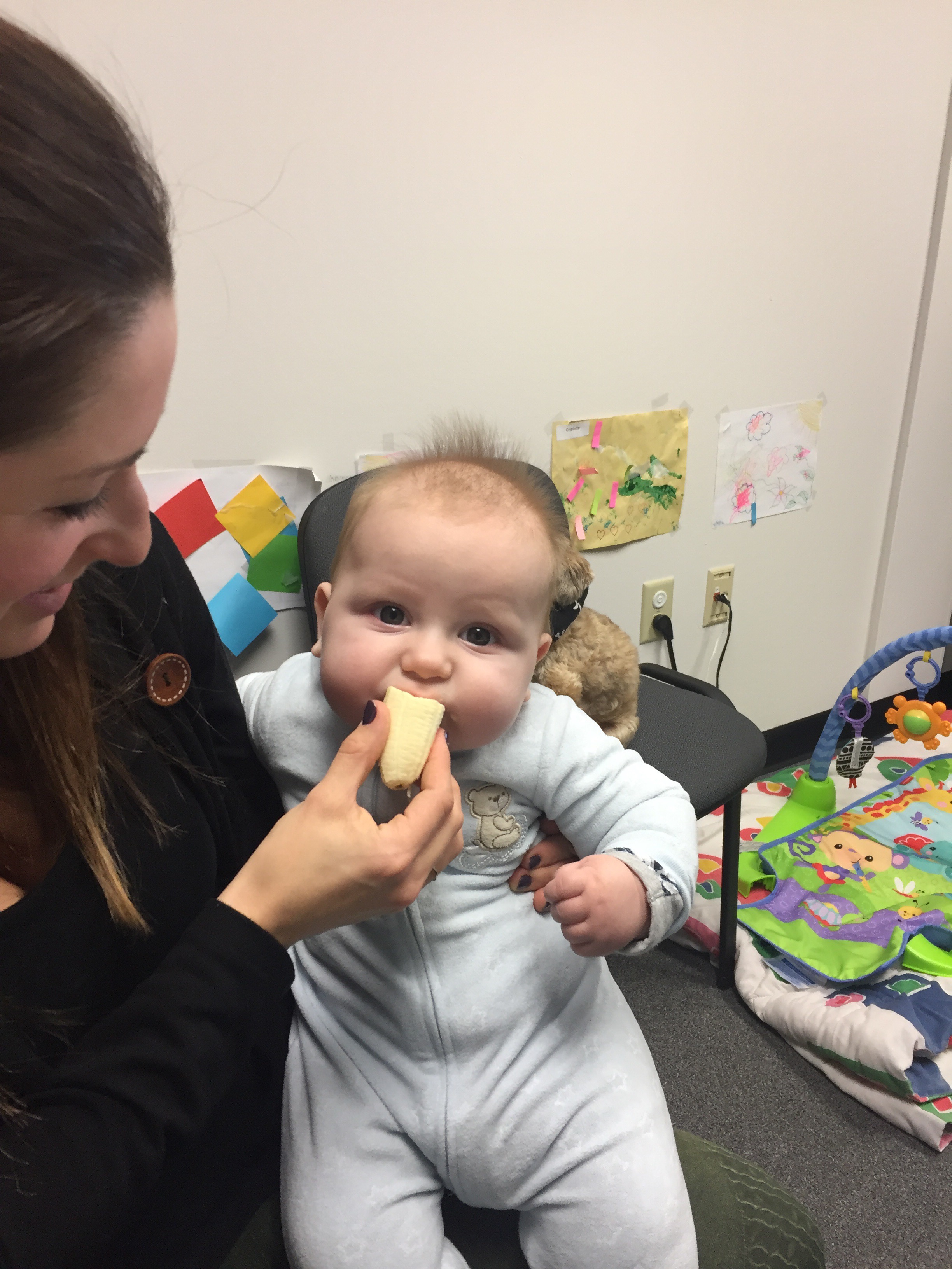Henry’s fourth food experience was with a banana this morning. He was hungry and I was trying to delay his feeding, as I was waiting on a call, so I let him try my banana.