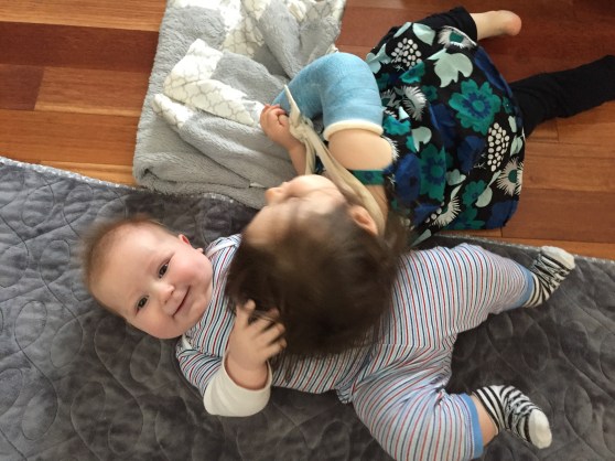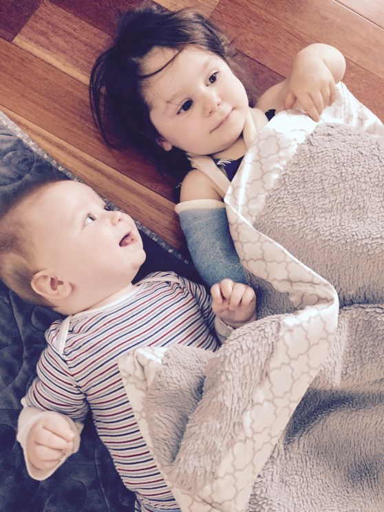 The siblings have been absolutely loving each other lately. They make each other laugh, they hug, they coo. Makes my little heart melt.