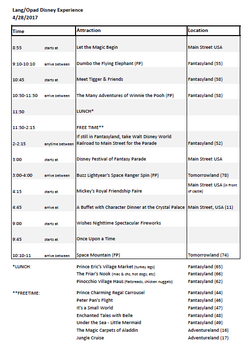 Disney Itinerary R