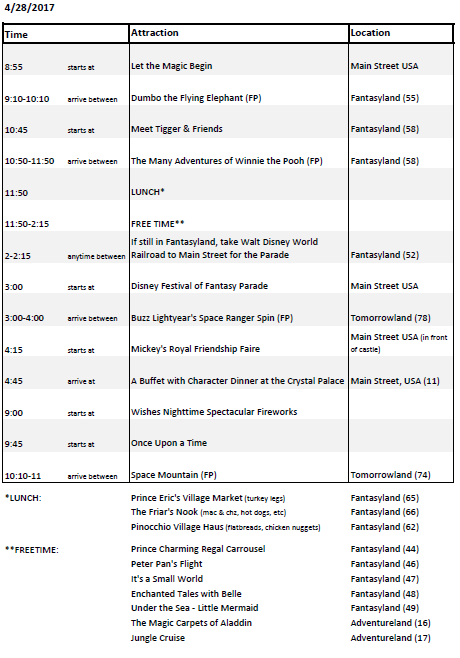 Disney Itinerary R