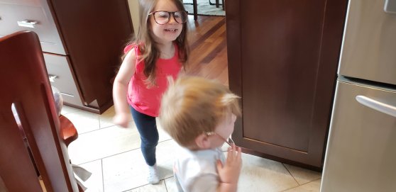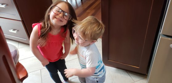 How silly are these little munchkins? Both kids came running out of my room on Monday, each wearing a pair of my glasses… and of course, thinking they were the funniest nuggets the world has ever seen.