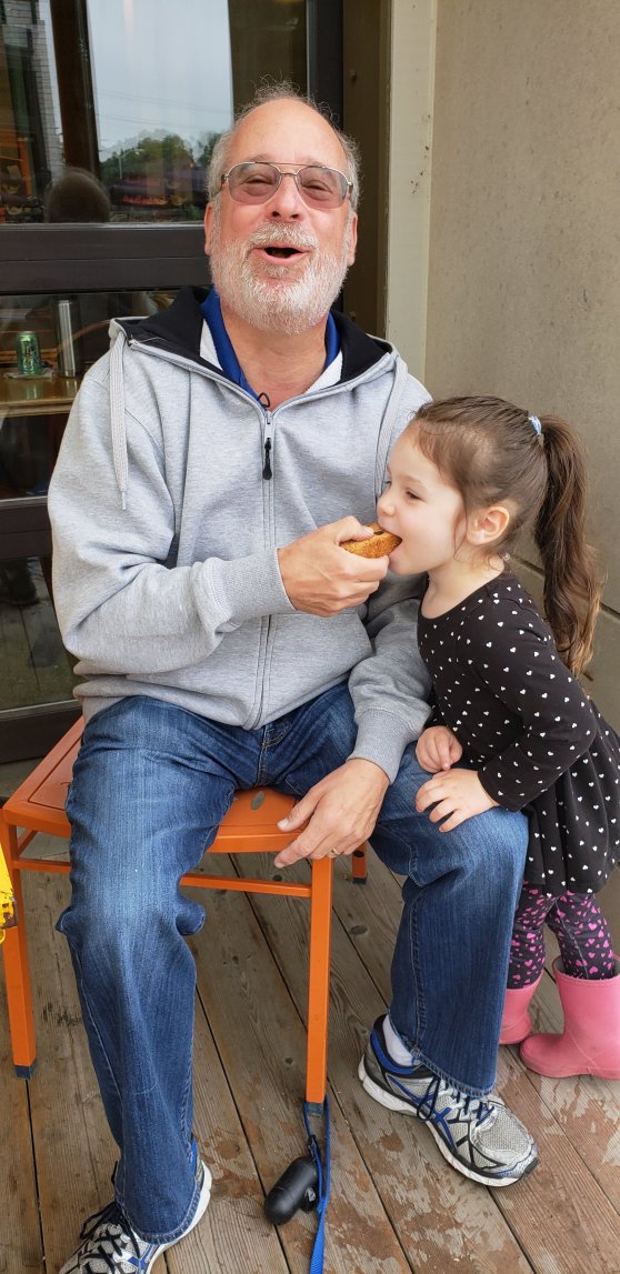 Charlotte and I had some time to spare before school this morning (camp drop off isn’t until 9 am – ughhh!!), so we met “Grandpa Tickle” for coffee & a biscotti.