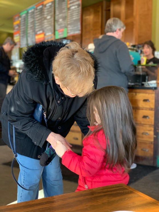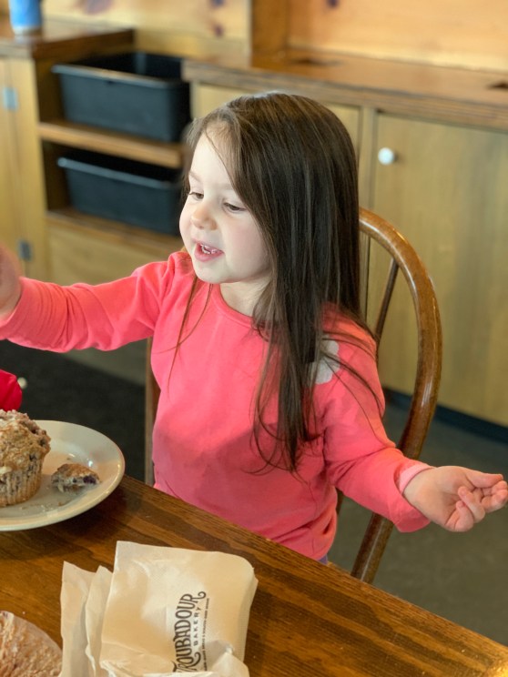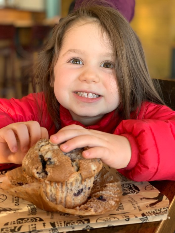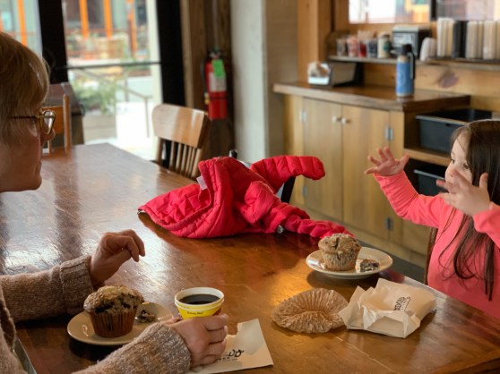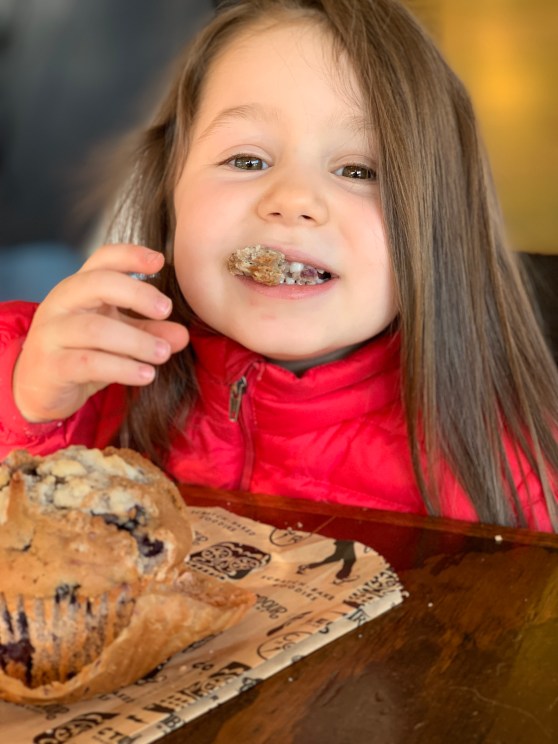 I love taking pictures of her in these moments. As she picks at her muffin or scone or whatever baked good she’s conned me into buying her… she’s like a squirrel nibbling at the most sugary parts first. As she speaks with full expression, hand motions and all. As she soaks in the undivided attention from Nan & I.