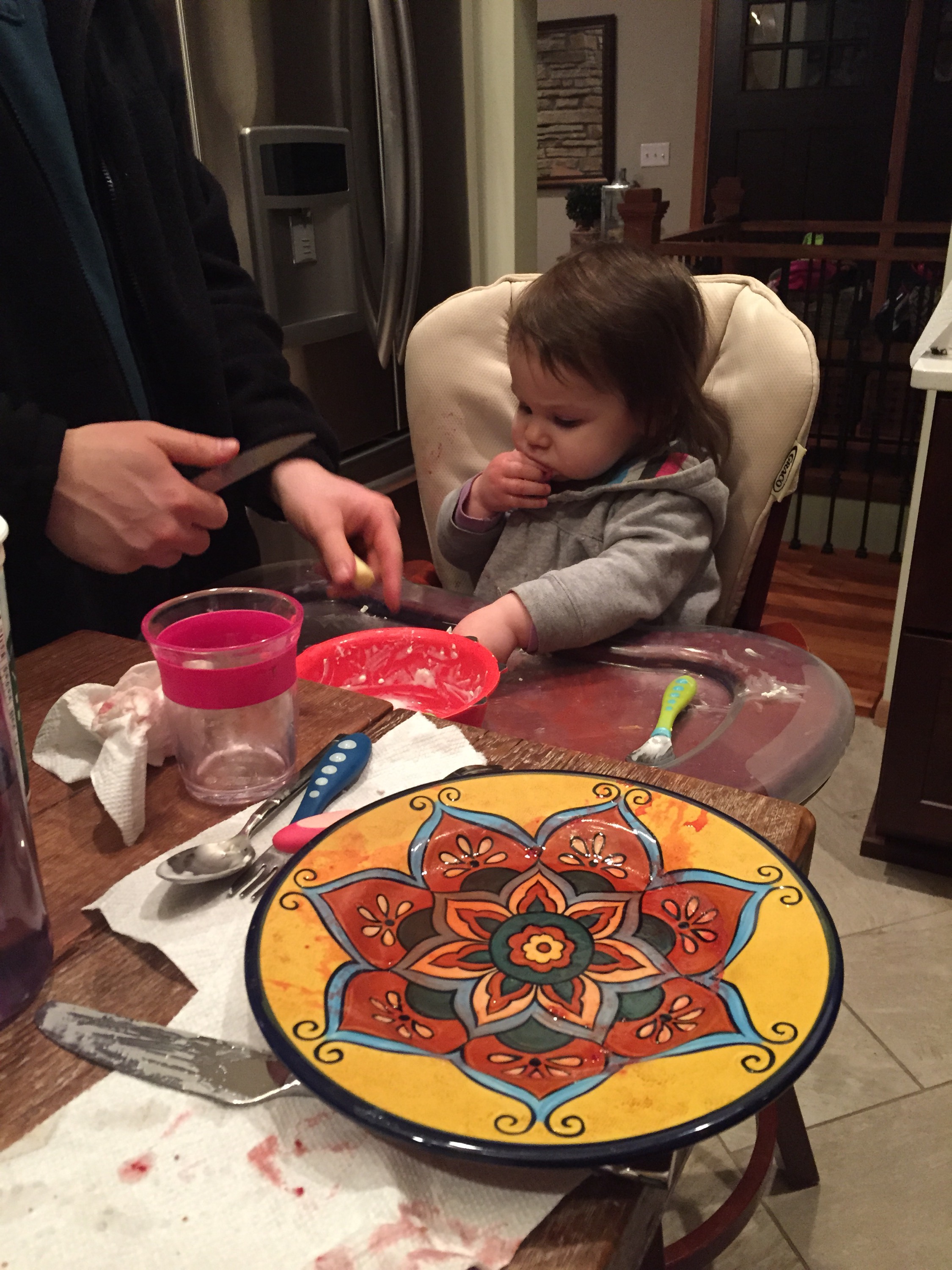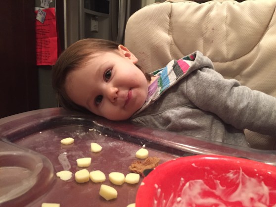 I’ll get back to the whole food thing in a minute, but the REAL news here is that we went to the pediatric GI doctor and while he believes Charlotte has a protein allergy, he is not too concerned with it (despite her green poops and the random blood streaks we’ve seen). In fact, he said that green poops are a total non-issue. He said that the benefit of me eating a more well-rounded diet far outweighs the benefits of the total elimination diet. So, that’s good news!