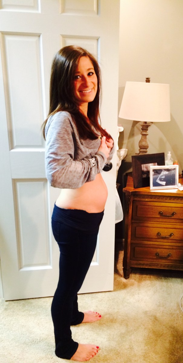 17 Weeks (January 17, 2014). I haven’t worked out once this week, which did not leave me excited for this week’s photo. But, our little baby is growing in there and is 4.5-5″ and 3.5 oz already!