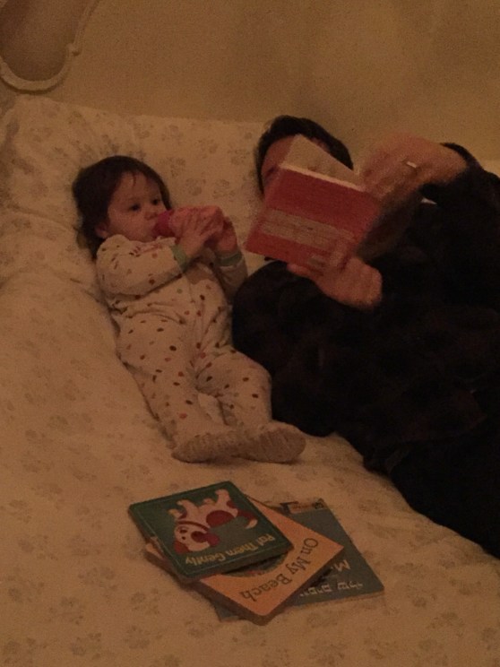 Charlotte happened to wake up early this morning, so we had a little extra time in our morning routine that gave us the opportunity to lay in bed while Charlie climbed all over us, waved to herself (and us) in the mirror, and played around! It was perfection.