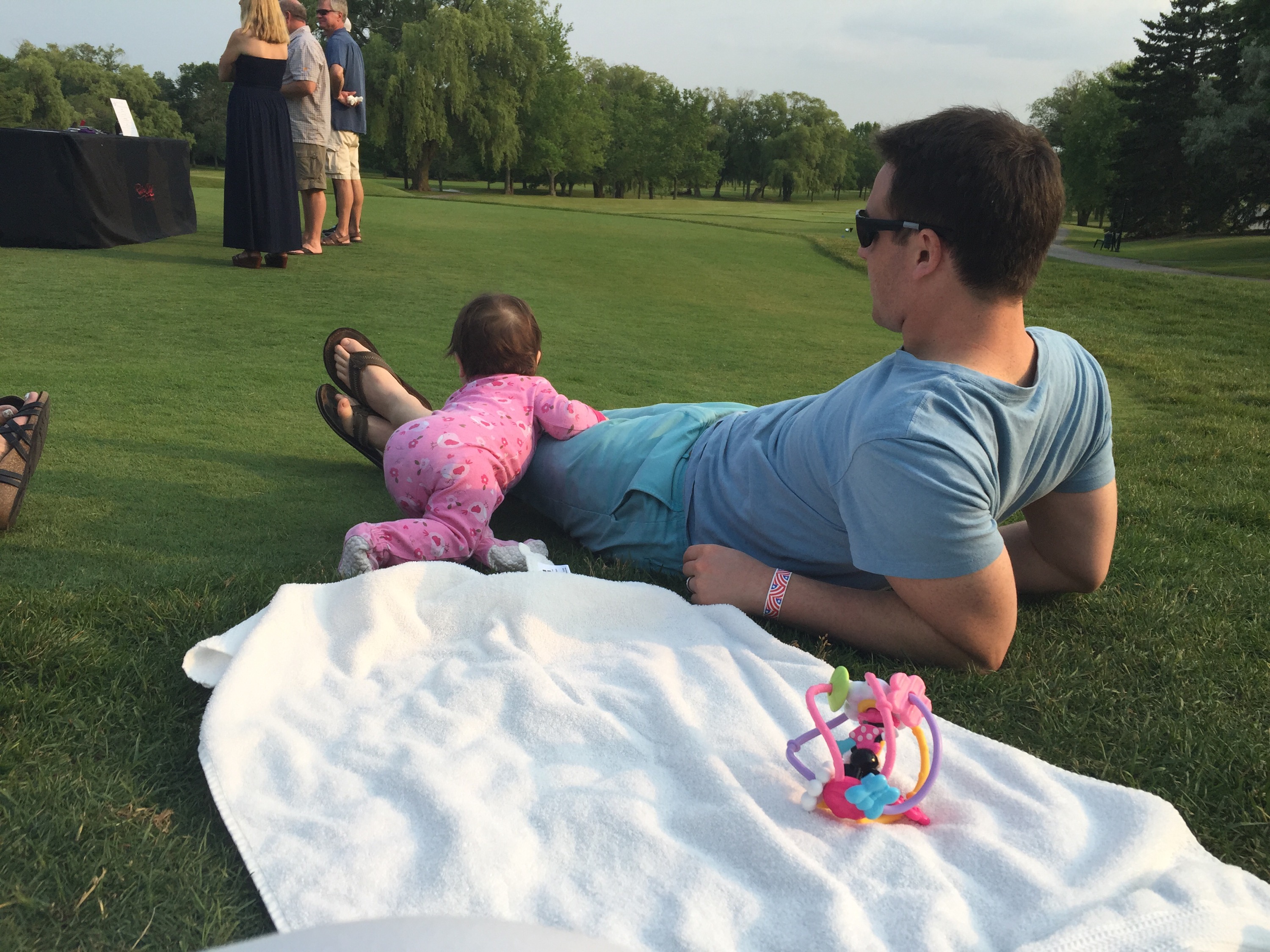 We decided to head back home – H slept at my parents’ house – and look for fireflies in the backyard. Our neighbor was shooting off fireworks.