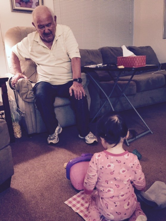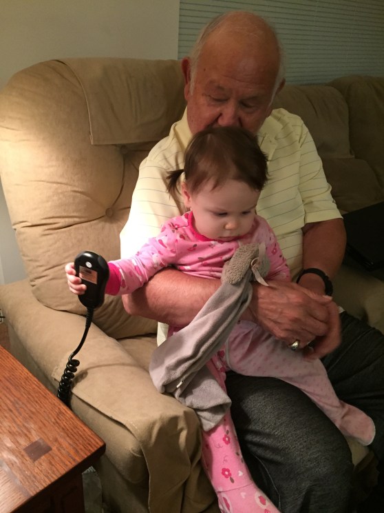 Last week, we had a great visit with my Gramps… Charlie’s Great Grandpa. She absolutely loves him and had a blast trying to eject him from the lift chair and showing off for him. Charlotte is a lucky gal to have such an amazing Great Grandpa…