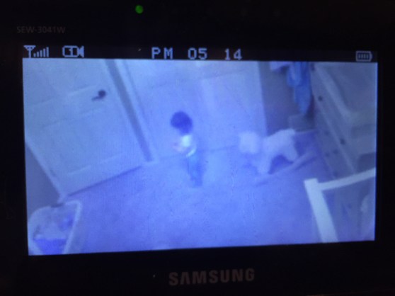 Me: “That’s okay. Mommy will move you and close the door,” I said as I set her down away from the door. “Mommy will start the timer once you are calm. And then, you may come out.” And then I shut the door, retreated to the kitchen and stalked the video monitor praying for the child to stop crying so I could start the timer.