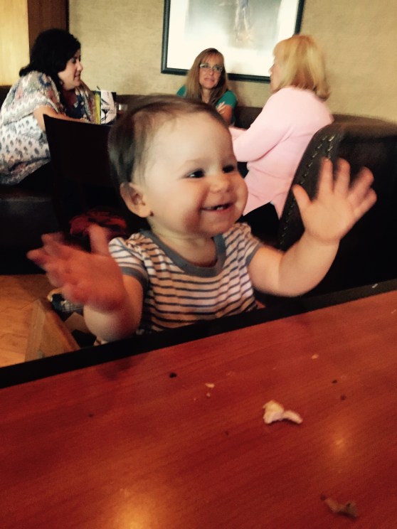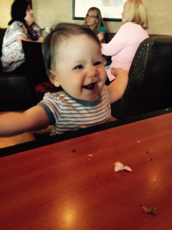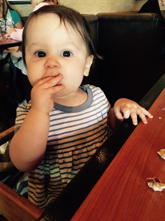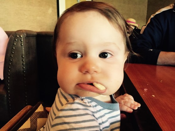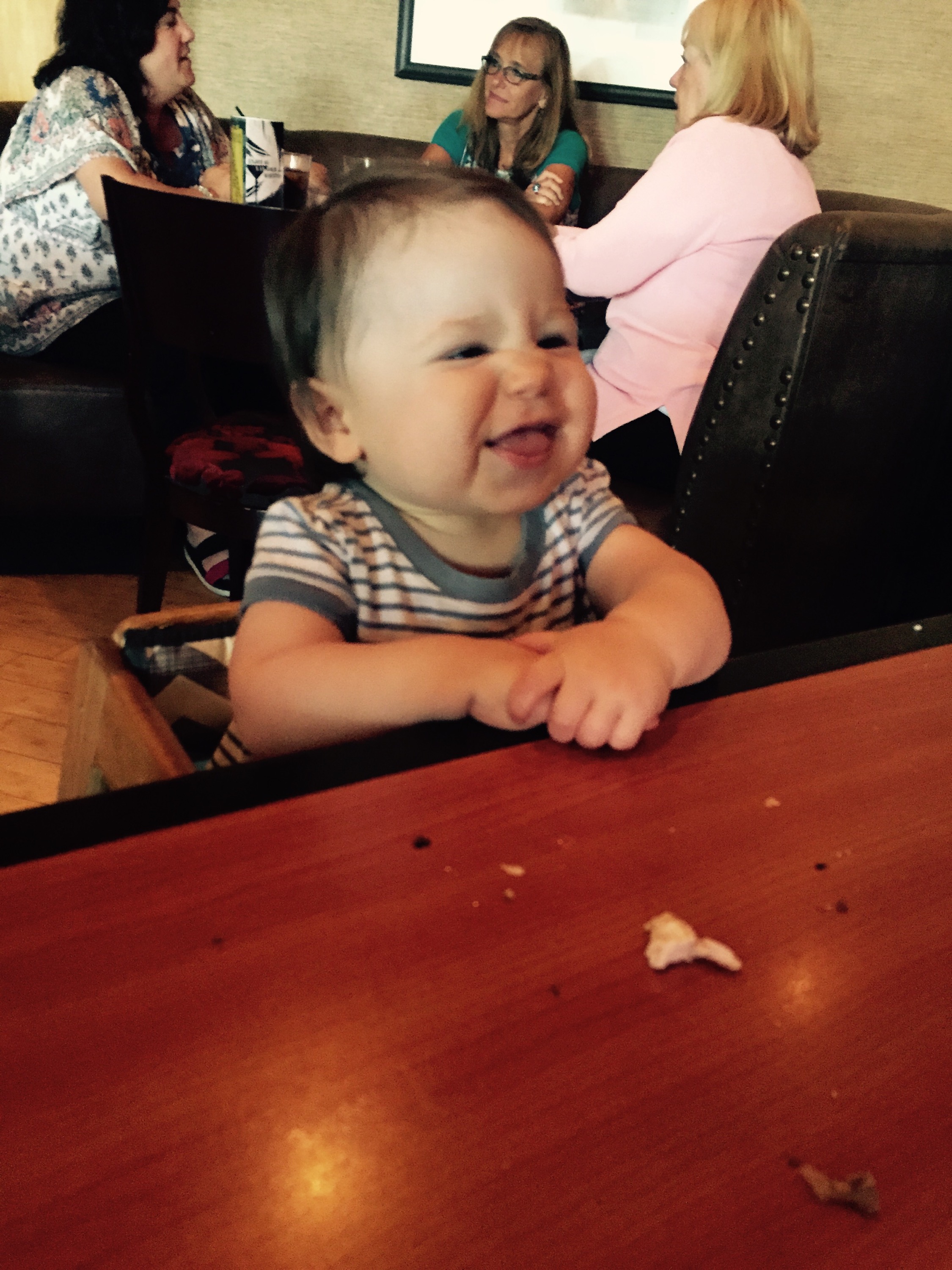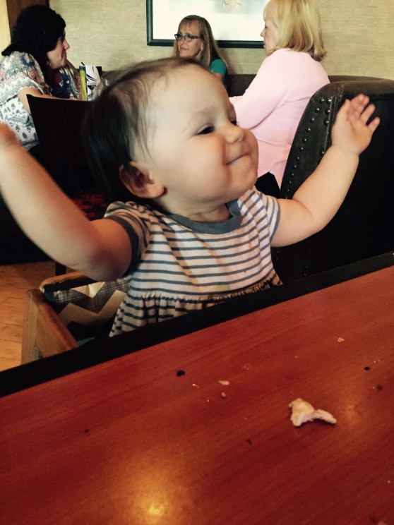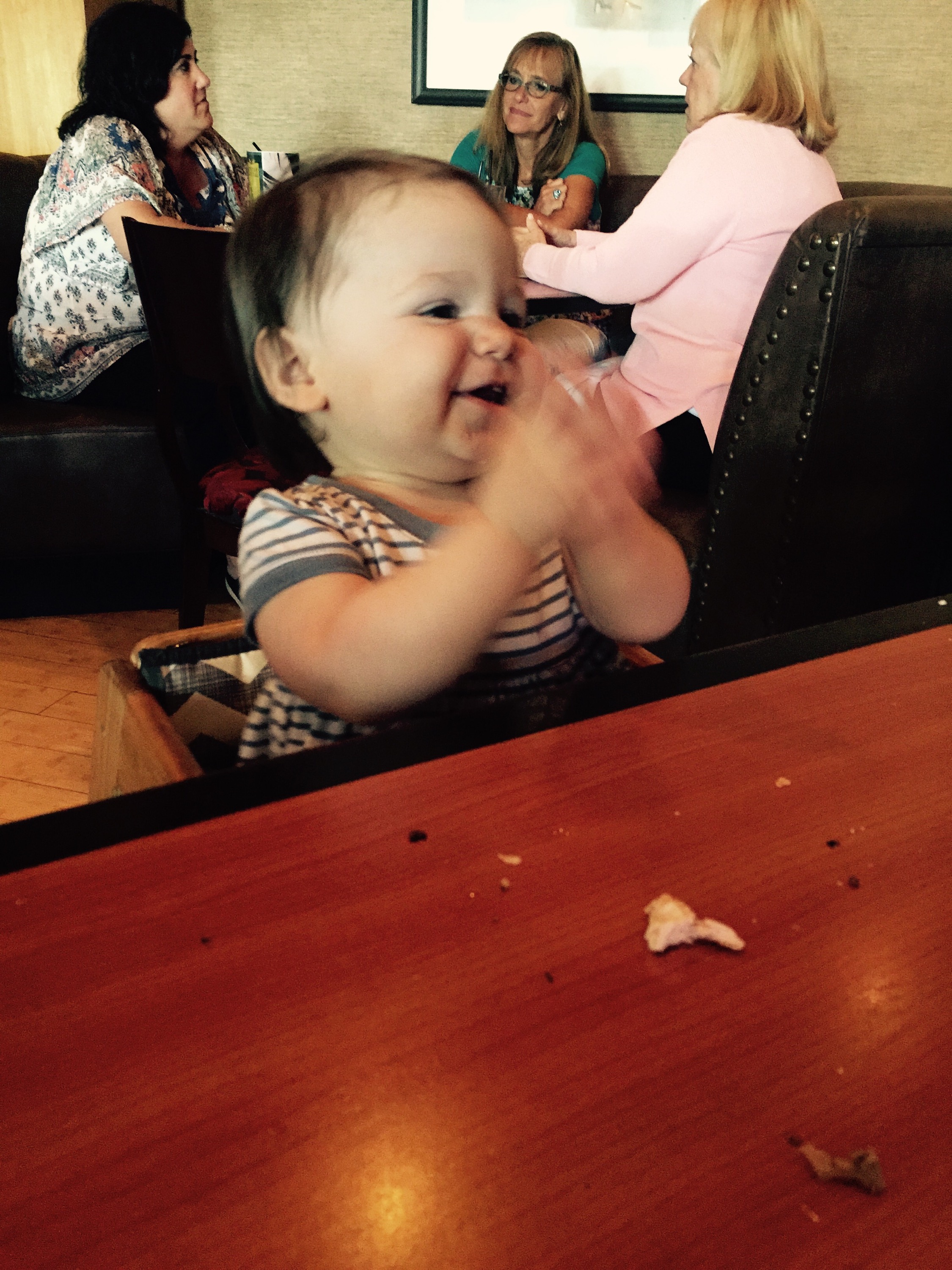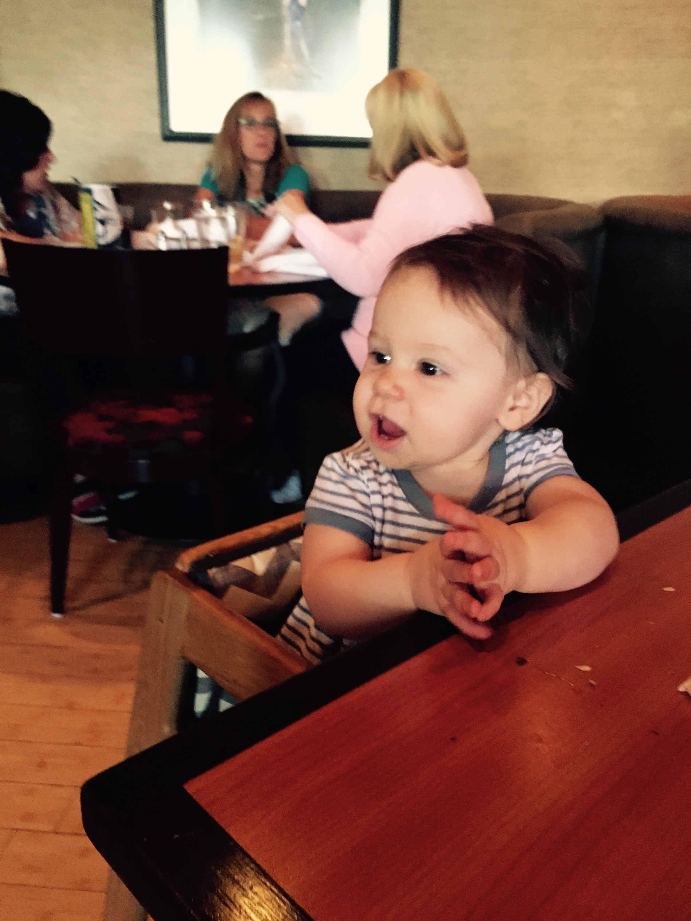 Clearly someone read yesterday’s blog post to the bunny because we’ve had such a sweet little day together (minus our 5:30 am wake up). Here are some (ha! Many…) pictures of our happy little bumpkin at lunch and our happy little snuggle sesh in the car before it was time to get strapped in the car seat.