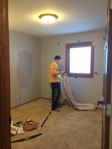 On Saturday, we were up bright and early to get started. Step 1 was getting everything out of the room. Hardware, drapes, etc.