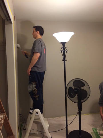 Step 11: Cut in and start rolling on the paint! We ended up changing the paint at the last minute and went with Sherwin Williams Requisite Grey.