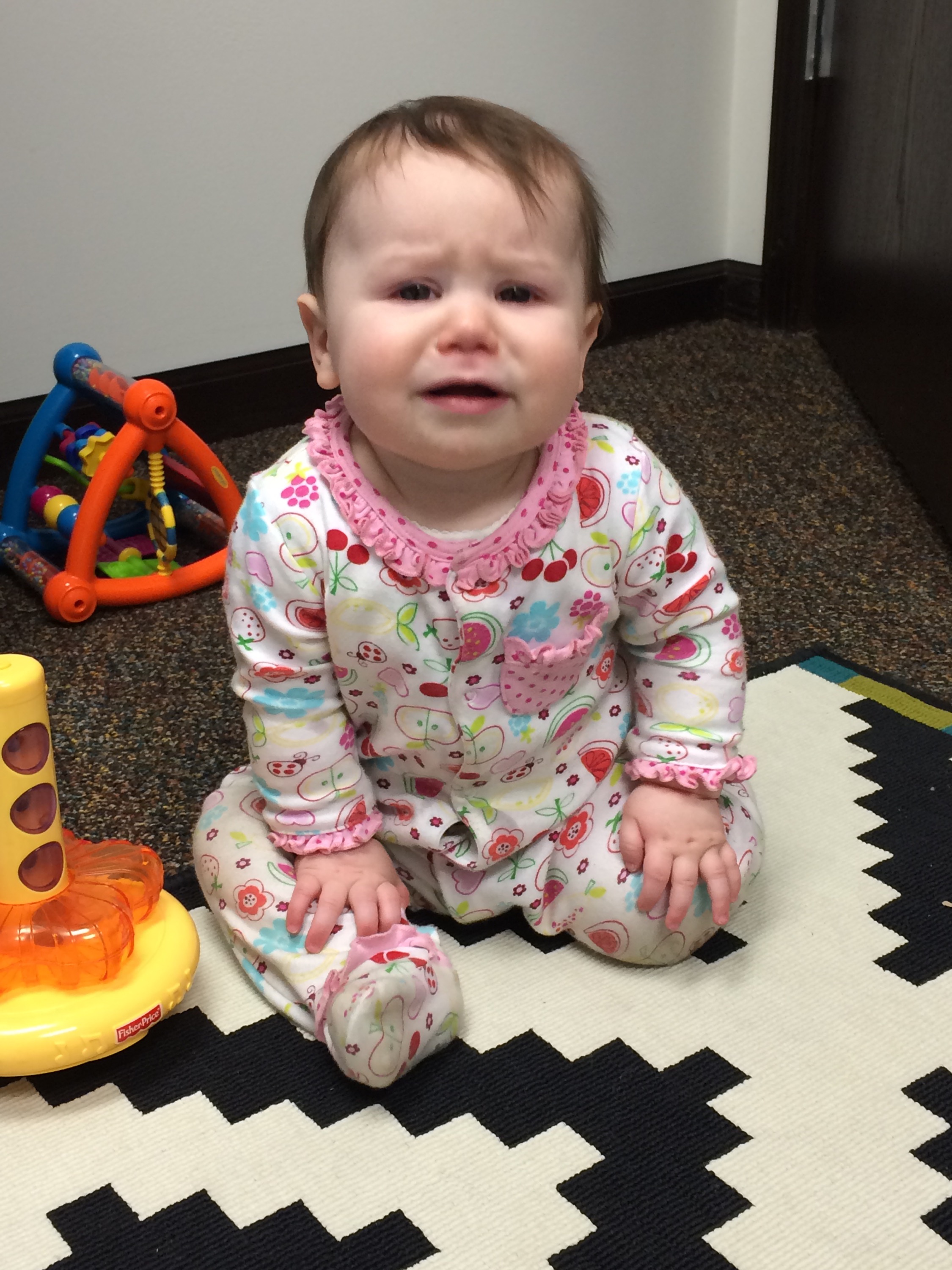 Little Charlie woke up around 6 (which is early) and was crying, but still face down in bed. We tried our normal tactics (talking to her through the monitor, playing lullabys through the monitor, waiting it out, praying she falls back to sleep)…nothing worked.